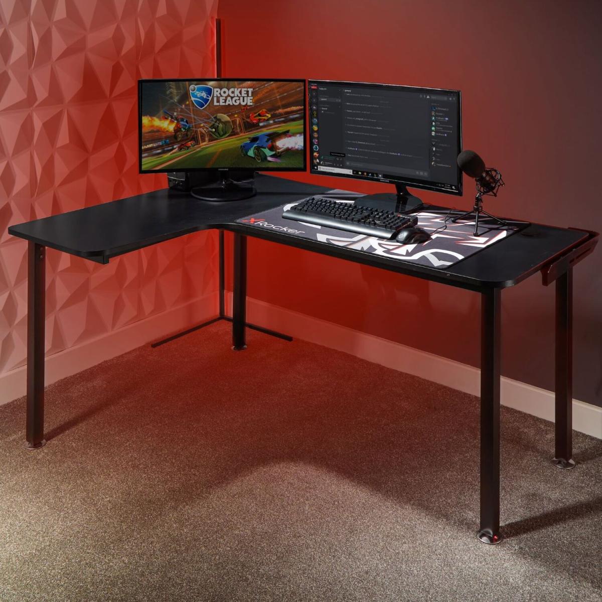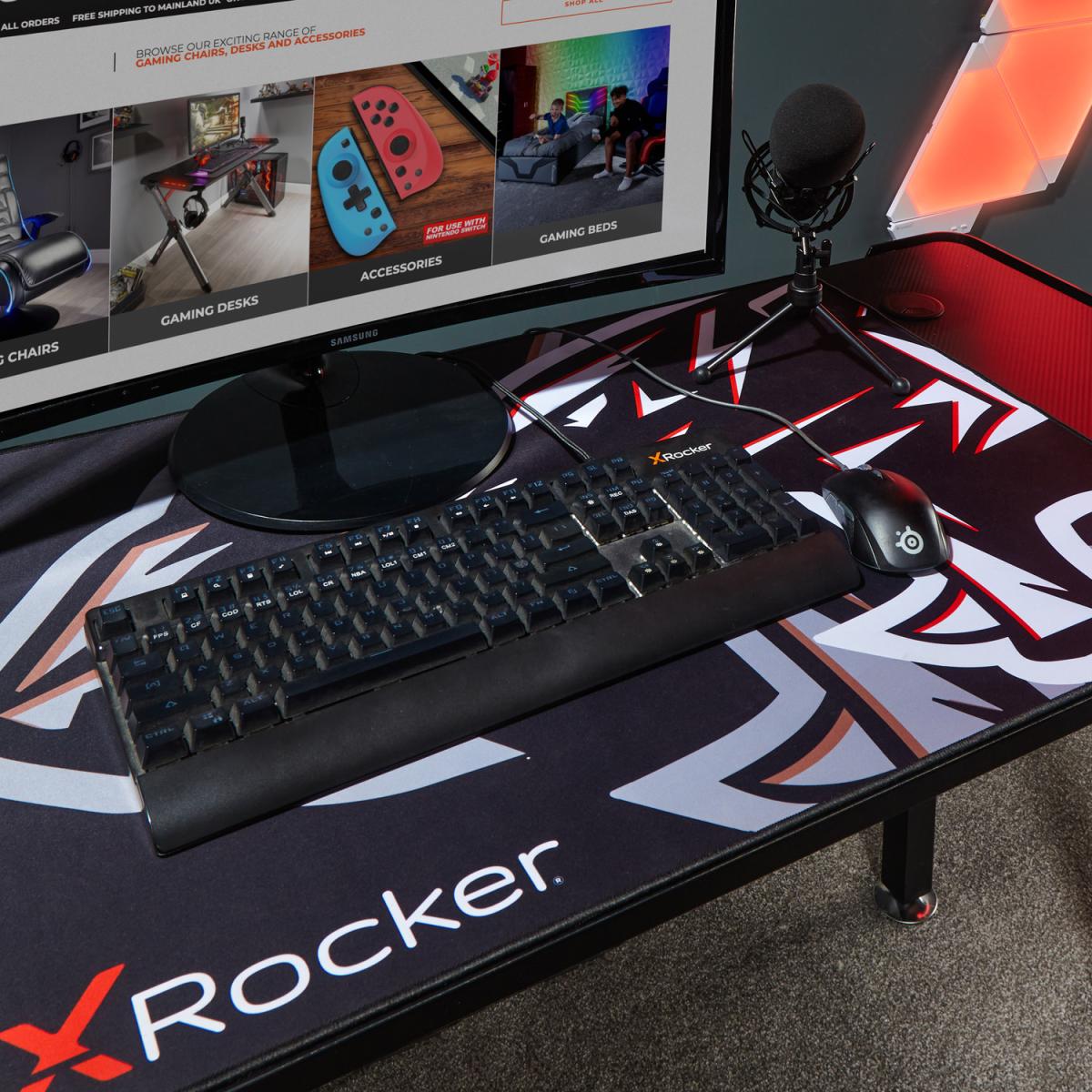 The X Rocker Panther XL brings the next evolution of X Rocker gaming desks. Mixing practicality and supreme style, the Panther XL features a large carbon fibre melamine-coated desktop surface, allowing for multiple monitor setups to help you conquer the gaming world. With 2 cable management portholes, you can keep the action clutter free whilst the included mouse pad provides a smooth, easy-glide surface for a stress-free gaming experience. Also available as a right-hand setup.