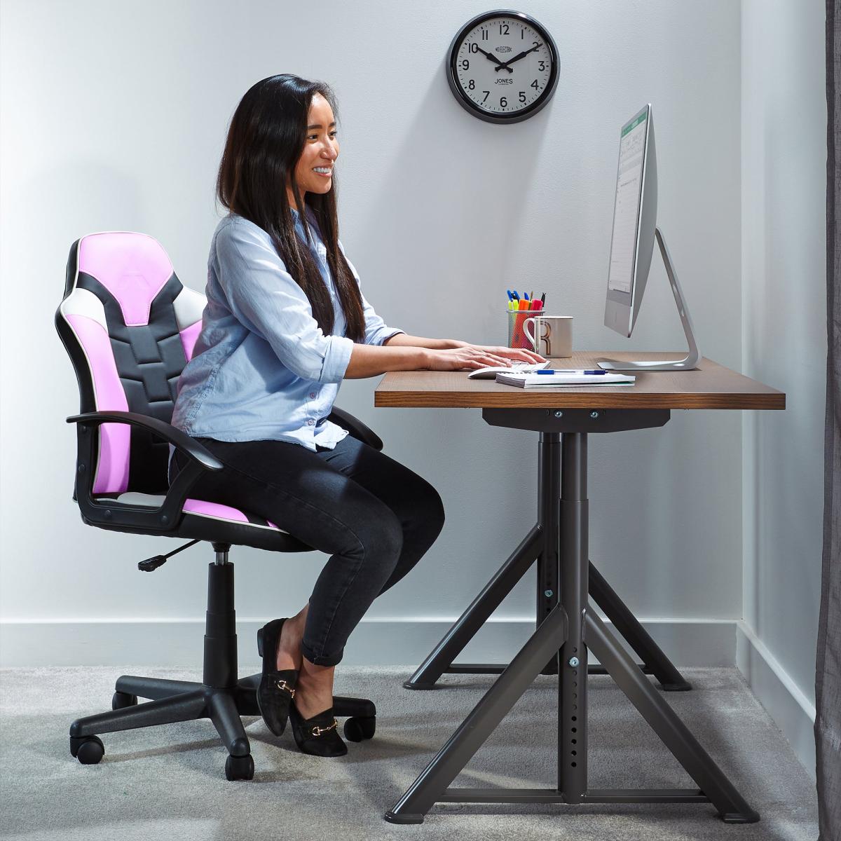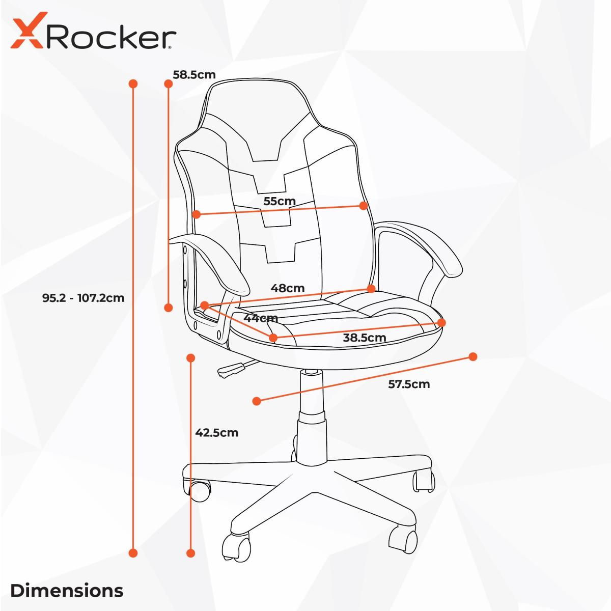 Perfectly sized for kids and teens, the X Rocker Saturn Midback Junior Esport Gaming Chair has a mid-back design and is finished with a striking e. Sports racing style. Upholstered in a soft and durable faux leather with foam padded seats and backrest, you can rely on this office/gaming chair for comfortable long-term gaming or study sessions as the naturally curving backrest creates additional lumbar support. Using a gas lift mechanism, this chair allows you to adjust the seat height to keep your feet flat on the floor and lift the armrests to create the optimal anchor point for gaming as well as a 360-degree swivel pedestal base to adjust to each growing user.