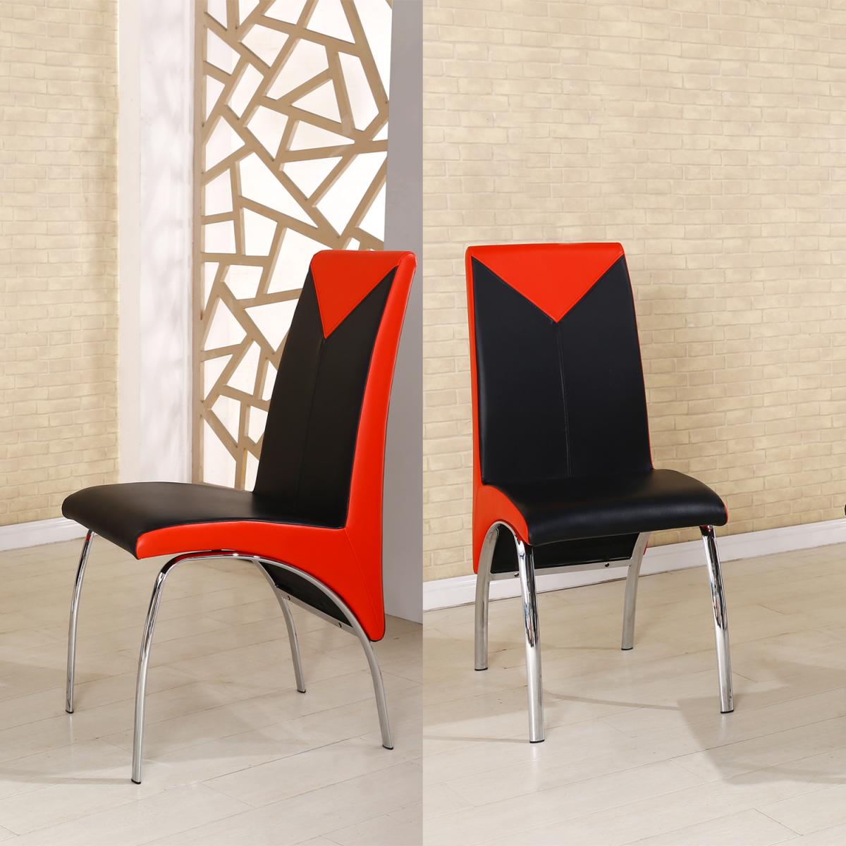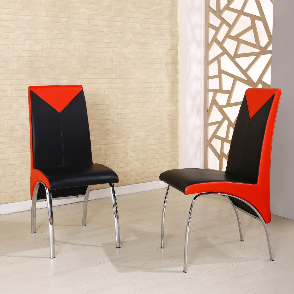 I love this chair for its bold colour blocking and modern aesthetic - the bright red and black combo lends a contemporary edge that works well in both minimalist and eclectic interiors. It’s particularly effective in a dining room that benefits from a statement piece, or in a kitchen with a touch of colour. Practical styling tips include pairing it with neutral-toned tables to make the chair pop, or mixing it into a mix of textures for an eclectic look. Its faux leather finish makes it easy to keep clean, making it a good choice for busy households or casual dining spaces. Overall, a versatile and eye-catching addition that adds personality without compromising on style.