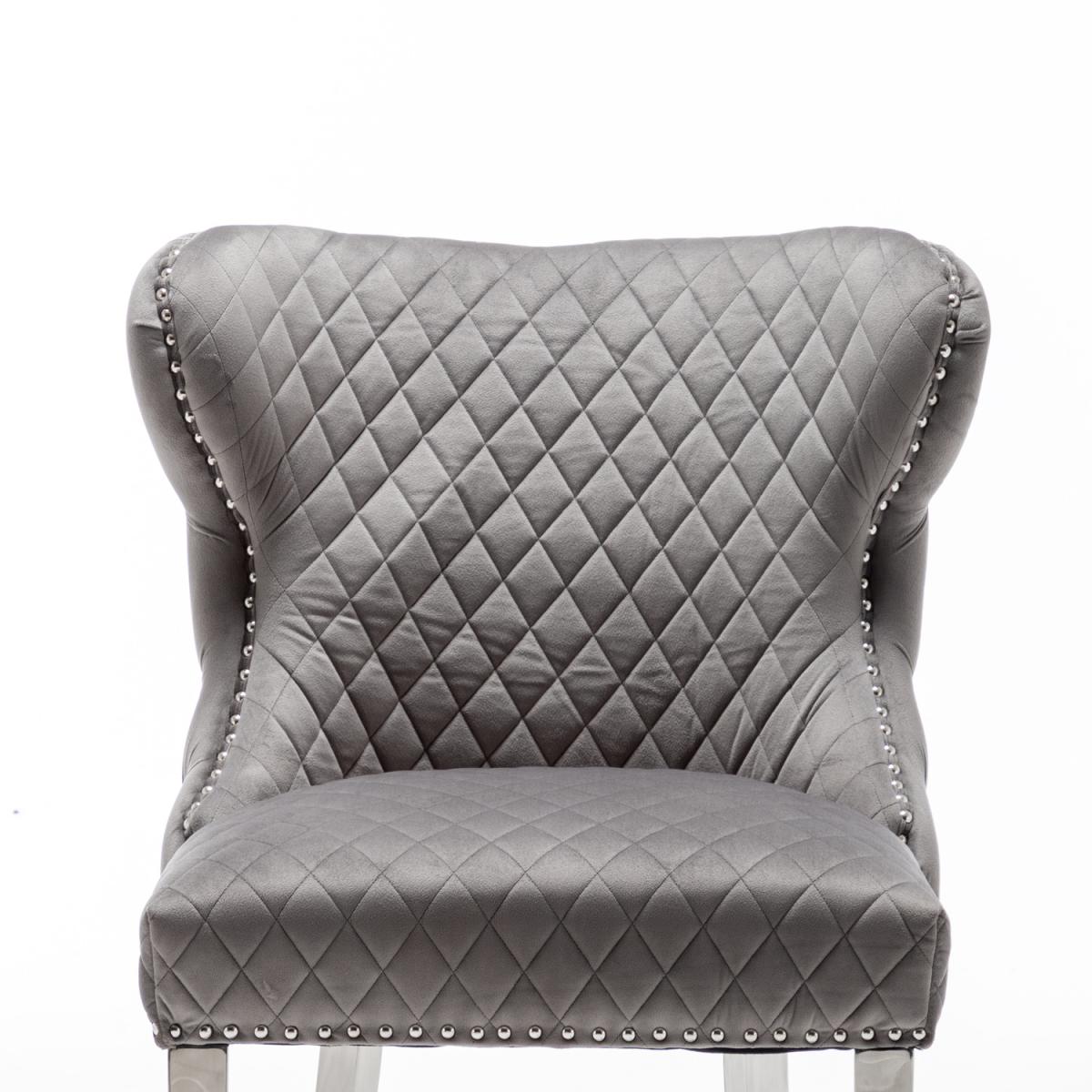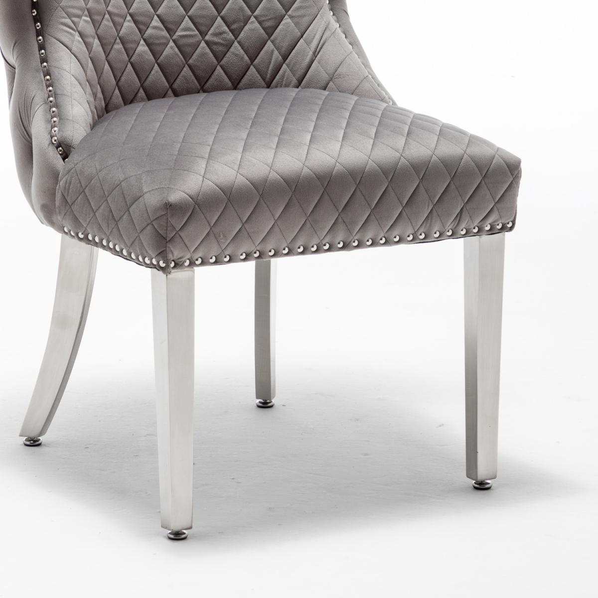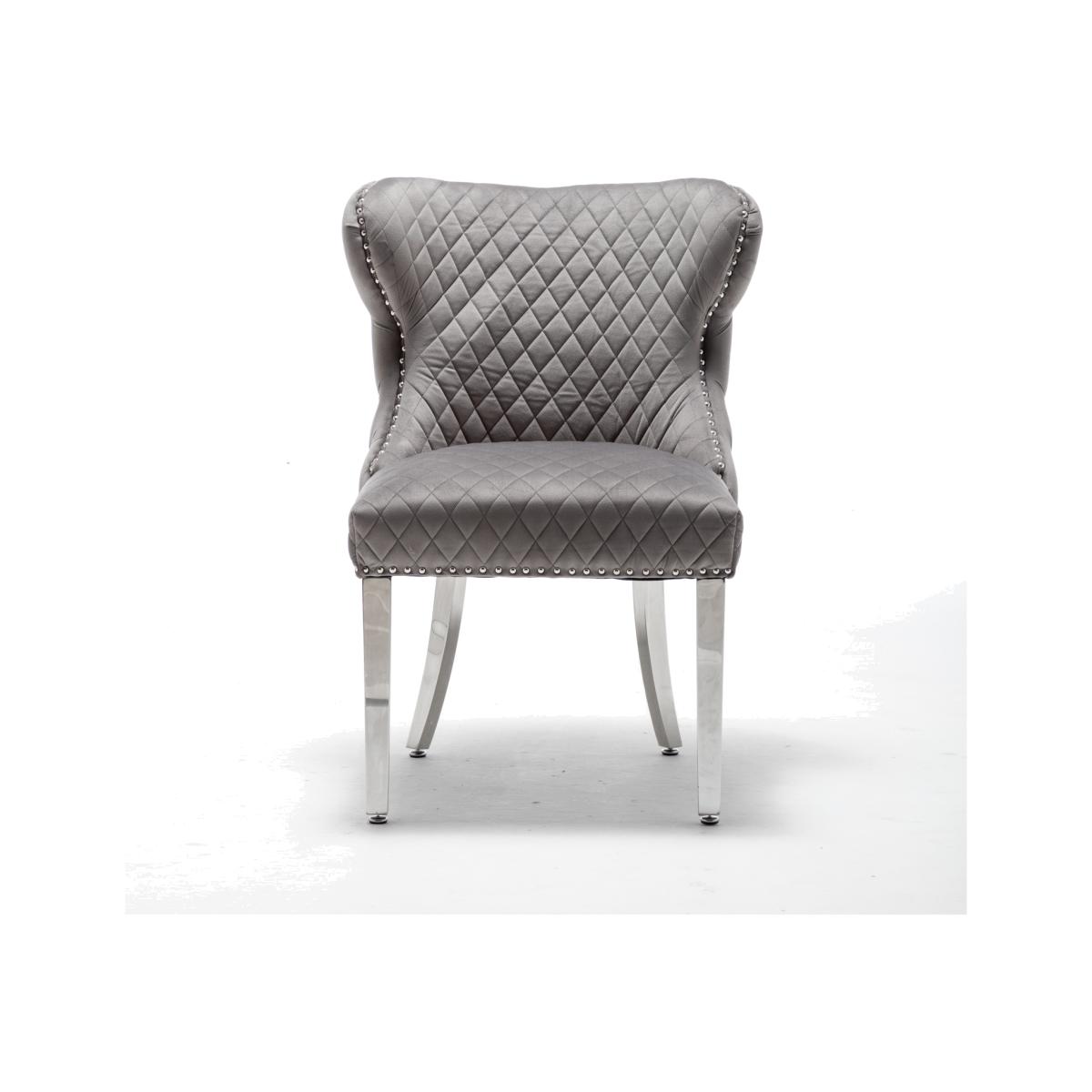 The Medusa collection is sure to make a bold statement with its sensational Medusa (Medusa is Trademark registered to Guru Kirpa (UK) Ltd.) Knocker back design and chrome polished steel legs. The padded seating and comfortable curved backrest are wrapped in a deluxe, soft, quilted and plush luxury velvet with a studded design and button detailing. The beautifully designed chair can be used in any interior setting whether it be the bedroom, dining or living room. This adds comfort and retains the bounce and shape. Protective Floor Pads to look after floors leaving no damage.