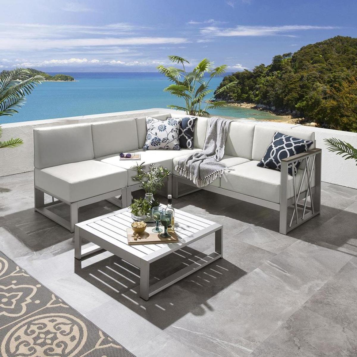If you are seeking an ultra-modern, super-sharp look that is also practical and comfortable, look no further. This stunning set consists of 5 pieces with cushions that are Gris Claro Grey marine fabric. The outdoor corner sofa set comes complete with our signature luxuriously thick cushioning that offers unbeatable comfort. The arms and coffee table tops are made from polywood which is will stay looking great after many years and is super-easy to clean. Set consists of: double right hand piece, corner piece, 2 armless pieces + coffee table Polywood Coffee Table If you need more information about this product, use the Live Chat service to speak to the team or send us a message.