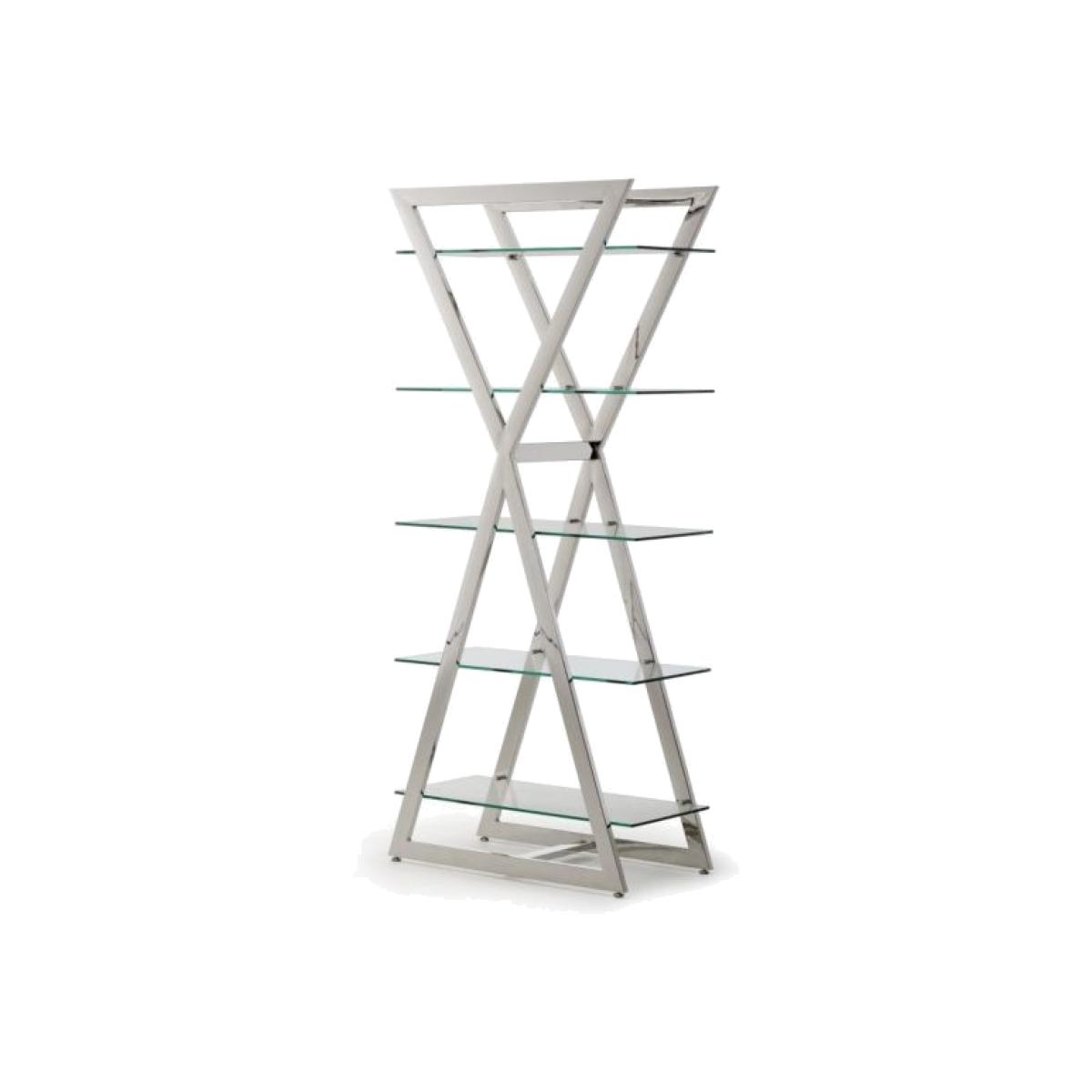 The Kesterport Xanadu has 5 clear toughened glass shelves with a polished stainless steel frame for a show stopping look. The beautiful intricate framework gives this display unit a real wow factor and look especially great when positioned 1 either side of a fireplace or entrance. Stainless steel and toughened glass construction Dimensions: 80cm W x 40cm D x 180cm H Sold individually Assembly required