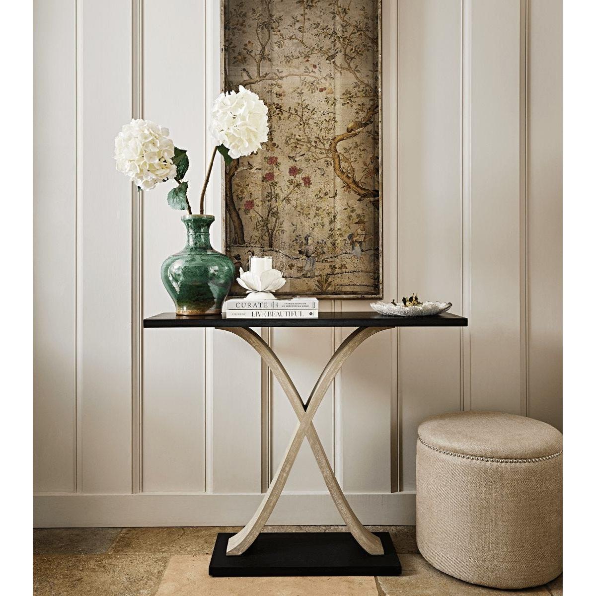 The Xavier console is a versatile piece that works well in a variety of interiors, from modern minimalist spaces to more sophisticated, eclectic rooms. I love its sleek dark grey top paired with the sculptural, contrasting base - this creates a striking focal point without overwhelming the space. It's especially practical for narrow hallways or dining areas, offering surface space for decorative accents, lamps, or even keys and mail. When styling, try layering with a mirror or artwork above and adding a few curated accessories like a vase or books to keep it looking polished yet lived-in. Its neutral colour and sculptural form make it adaptable, so it can complement both monochrome palettes and more colourful schemes.