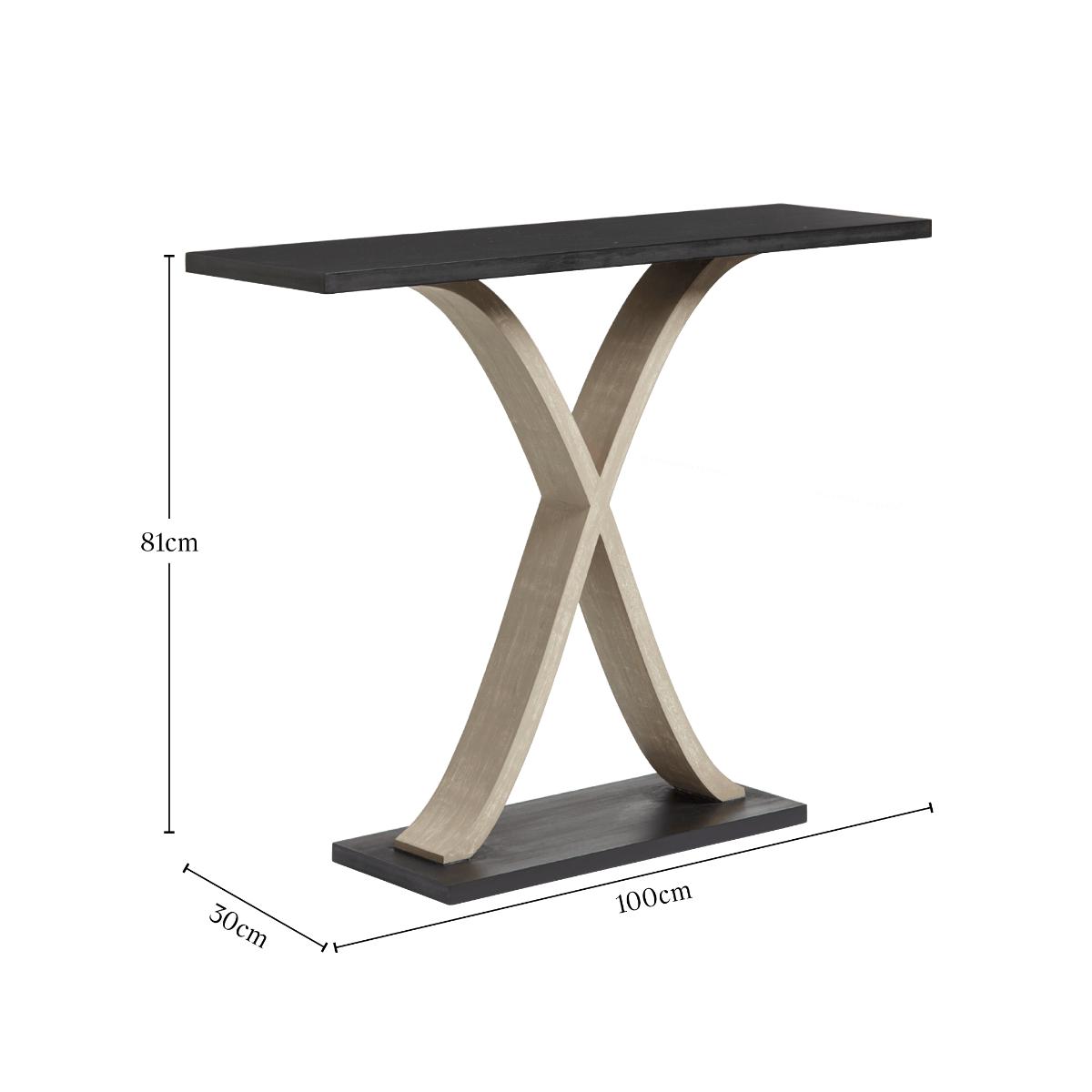 With its sculptural style and contrasting colours, the Xavier Console Table certainly makes a statement. Based on a favourite from our collection – the Magicus Console Table – the X-shaped, hand-painted mango-wood struts that form Xavier’s base curve gently from top to bottom, and are sandwiched between two slender pieces of wood. These surfaces, which form the top and base, are painted a modern dark grey hue. Due to the manual process used to complete the console, the tones will vary from piece to piece.