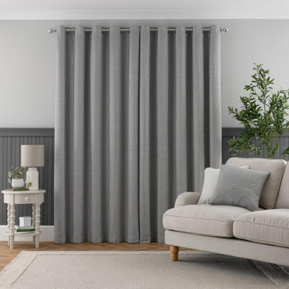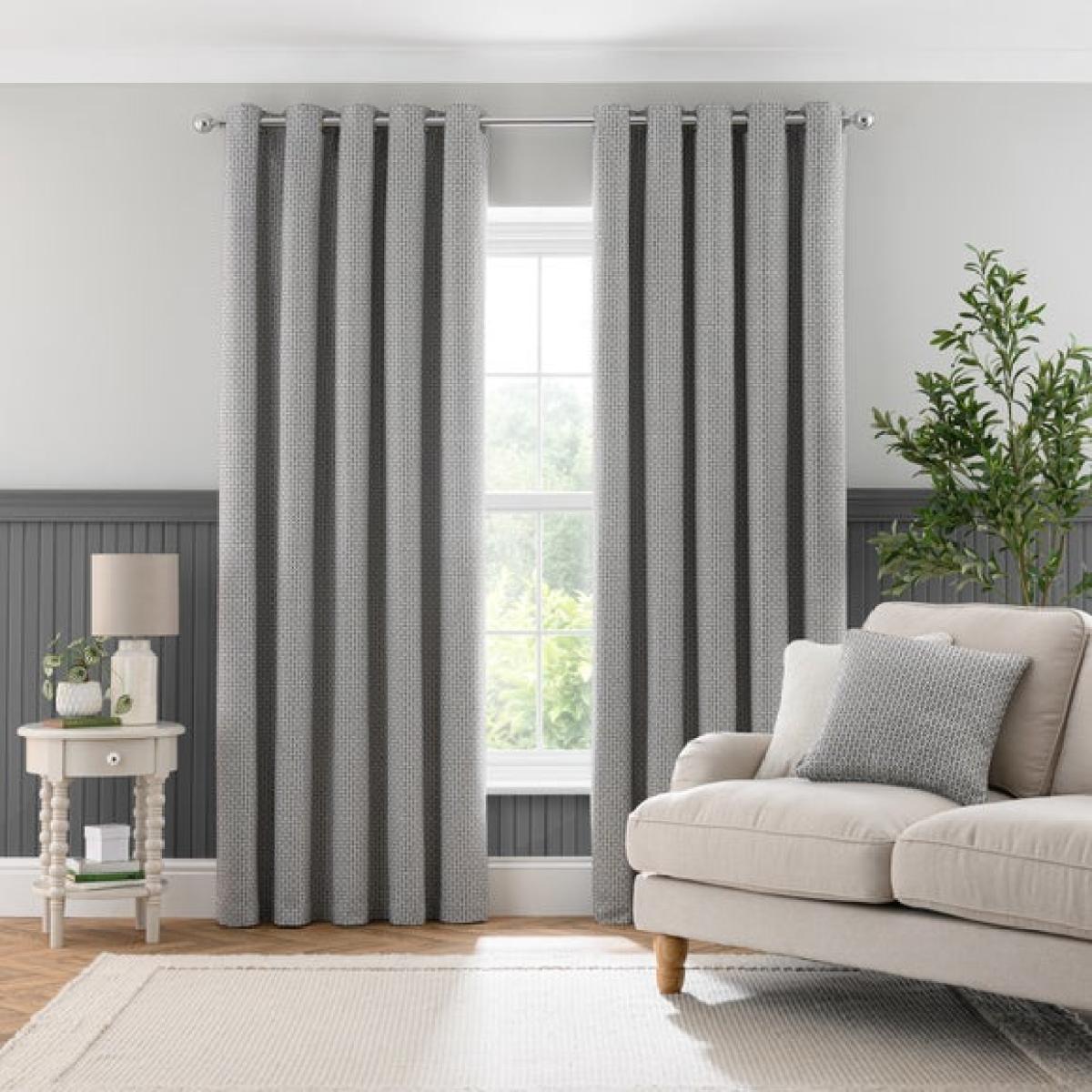 * Includes 2x curtain panels * Geometric design * Crafted from polyester * Fully lined Bring a touch of modern into your home with the Xavier Eyelet Curtains. Designed with a timeless woven geometric pattern and crafted from recycled polyester, they are fully lined for optimal drape and light control. The easy-to-use eyelet header creates clean folds, while a wide selection of colours and sizes ensures the perfect fit for your space.
