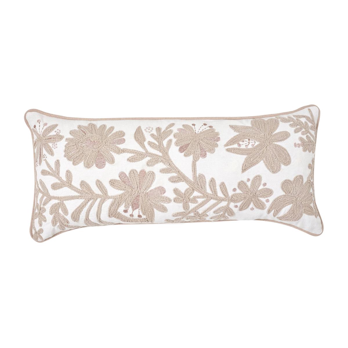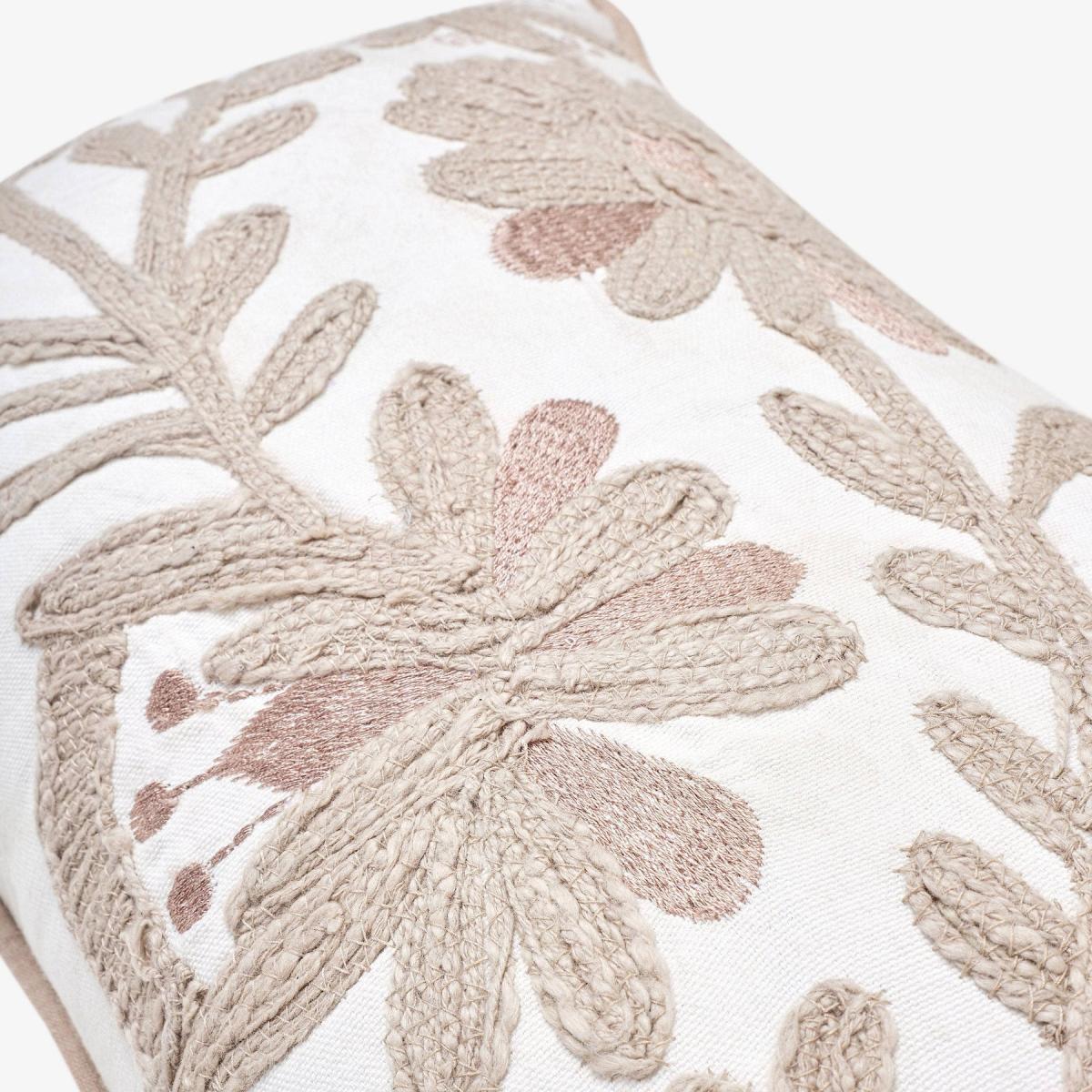 Discover romanticism in bright and warming tones with our Xavier rectangular cushion cover, the classic yet contemporary style is handmade from cotton for a cosy soft touch feel that's perfect for adding minimalist design to the decor. The nature-inspired cushion cover in white is designed with pipe edging in a contrast pink colour for a complementary colour, finished off with embroidery stitching in flower patterns in matching hues to evoke picturesque reminders of the outdoors. Will make a charming addition to any sofa, chair or bedroom and is perfect to update neutral decors with new textures and patterns. Celebrates craft traditions - craftmanship of cushion cover is skilfully handwoven in India by local talented artisans.