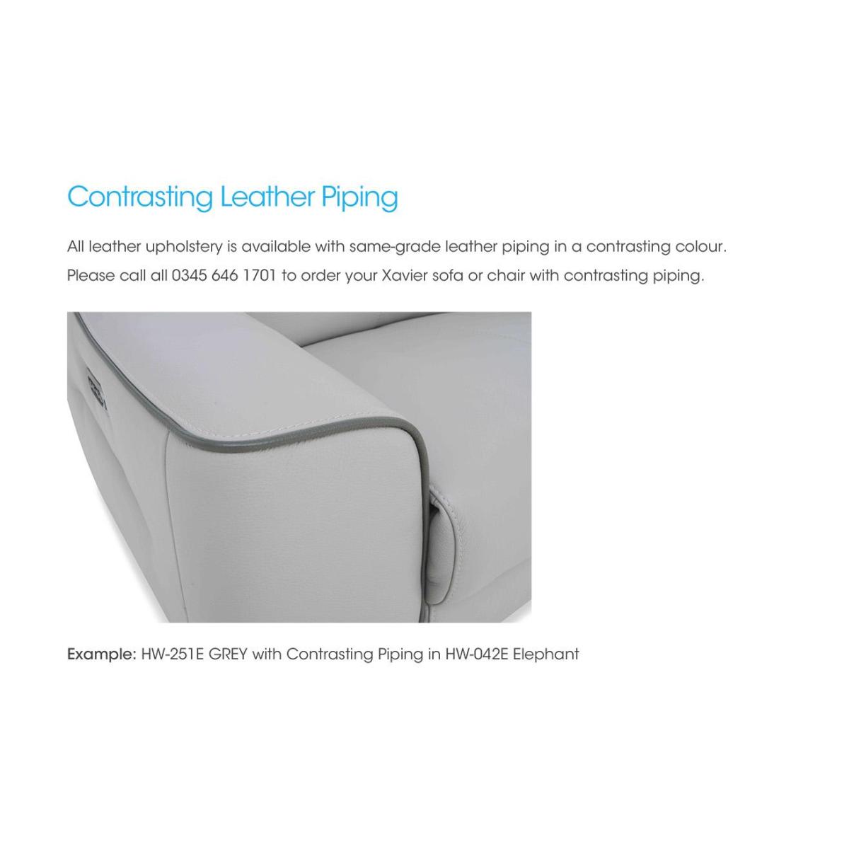 The World of Leather Xavier collection of sofas and armchairs looks and feels fabulous. Perfect position technology, power recliners, sprung seats and superb cushioning make it incredibly easy to get comfortable and stay comfortable, and the power headrests let you move effortlessly between low-profile sofa style and high-back support. The range’s contemporary curves and elegant lines ensure that whatever you choose will be a very on-trend addition to your living space. The collection is upholstered in soft 100% leather in a choice of colours, and is also available in fabric upholstery. The World of Leather Xavier range is exclusive to Furniture Village. This fabulous leather armchair is every bit as comfortable as it looks. Want a little more luxury? Upgrade to the power recliner model with power headrest. Why you’ll love it Contemporary style meets advanced comfort. You’ll enjoy this chair’s superbly cushioned curves and fabulous sprung seat. The adjustable headrest lets you switch between low-profile style and high-back support. Also available with a power recliner and power headrest for personalised relaxation. The power option also features perfect position technology and handy USB device charging. Beautiful 100% leather upholstery in a huge choice of colours. Only at Furniture Village. This leather armchair is part of our Xavier range. What you need to know Medium comfort level. Seat suspension: no-sag serpentine spring. Seat cushioning: foam topped with fibre. Back cushioning: foam topped with fibre. Please allow time for new recliners to ease. The non-reclining version of this armchair does not have a power headrests or USB charging. Minor gaps are necessary to ensure ease of recliner motion and may be exaggerated depending on floor type. Leather has unique marks and characteristics with variation in colour and texture. Leather softens with use. Smoothing the tops of leather cushions prevents signs of visual comfort. Please read our upholstery care guide for more advice.