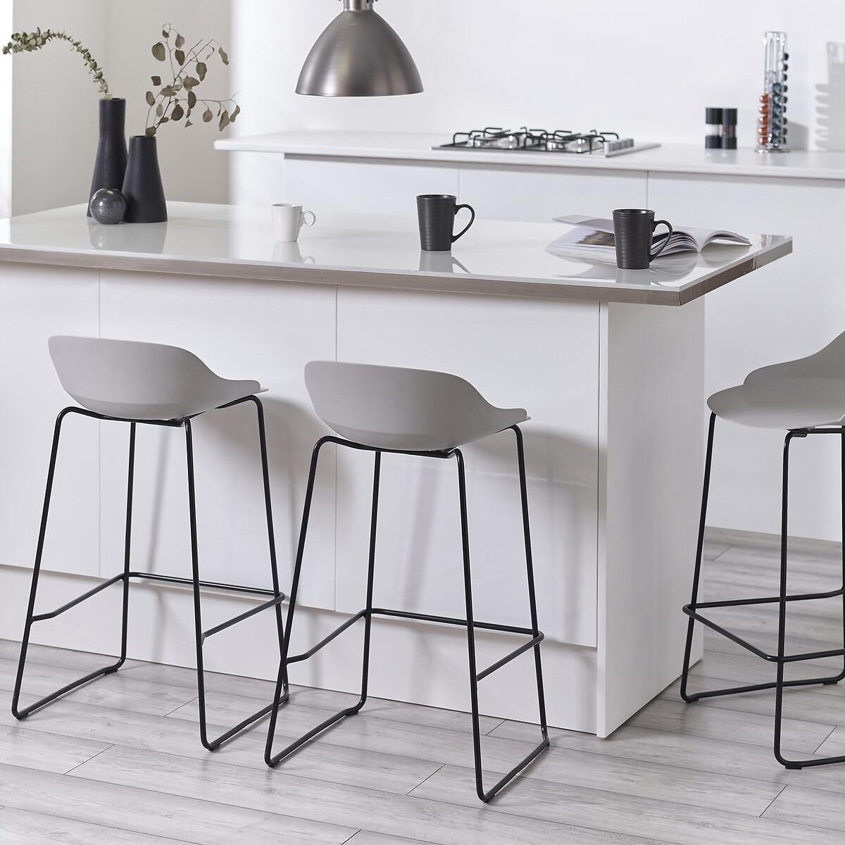 The Xavier stool offers a sleek and contemporary design that effortlessly combines style and functionality. Flowing metal legs and an elegant curved seat come together to create a sturdily constructed piece with a sleek design ideal for modern minimalist living and small spaces. With it's low back ergonomic design, it provides ample support for periods of long sitting and is sure to fit in any kitchen or dining room. Product Details • Set of 2 • Metal legs • Plastic seat • Low back design for added support • Assembly required • Fixings included • 12 month manufacterers guarantee • Recommended for use with standard kitchen countertops of 90 cm height. Product Composition - 90% Plastic, 10% Metal. Product Dimensions - 49 cm x48 cm x83 cm , Weight - 12 KGSeat height - 43.5 cm. Back height - 36 cm Package Dimensions - 72 cm x 54 cm x 52 cm, Weight 14 kg. Please check your measurements before ordering. We recommend purchasing stools to be no less than 15cm and no more than 25cm from the top of the stool to the underside of the countertop. Please note: this product cannot be be delivered to all Offshore Islands Northern Ireland or Republic of Ireland. This product will be dispatched by one of our trusted suppliers. You’ll be contacted by their selected courier about your delivery.
