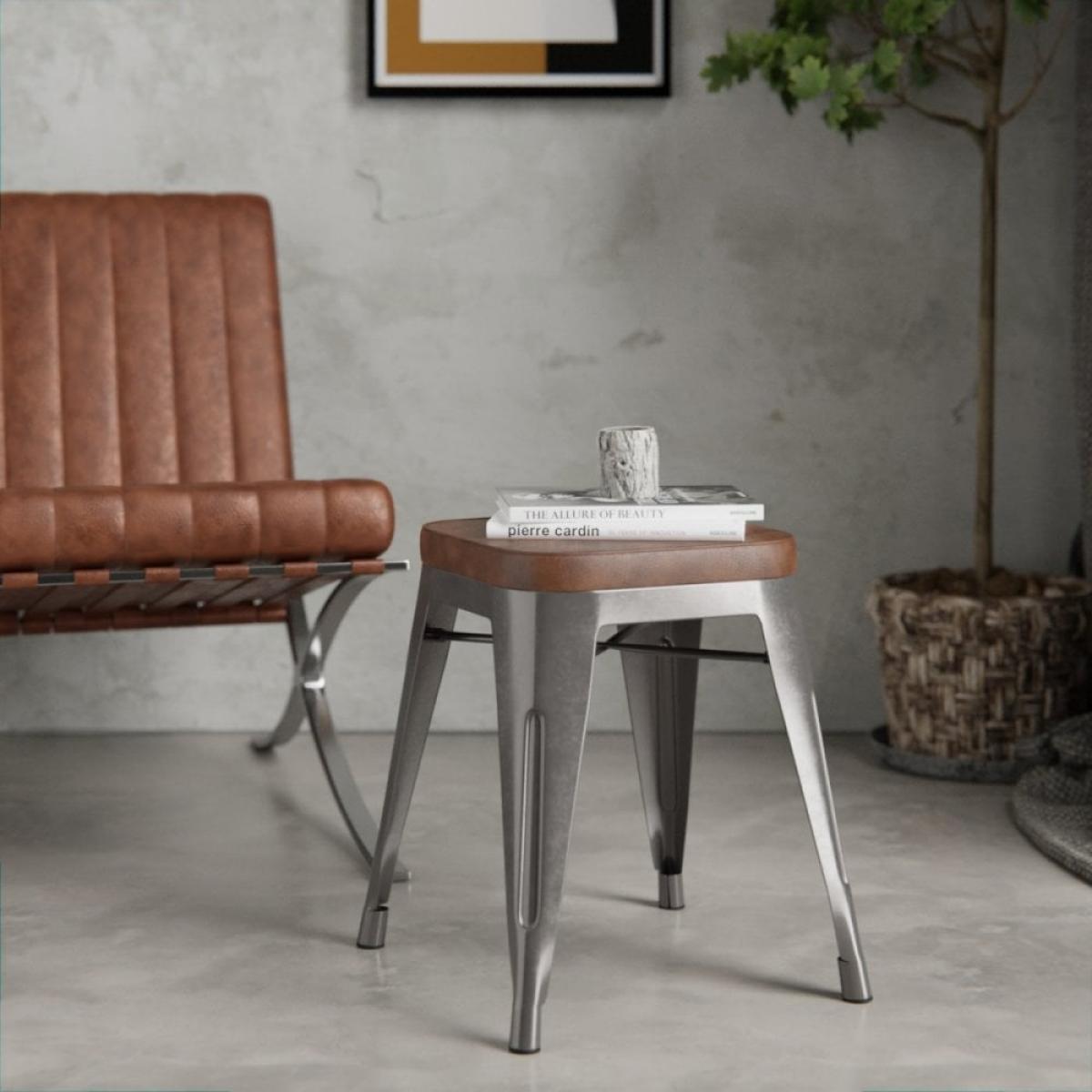 Inspired by Xavier Pauchard Tolix range, this industrial rustic style showcases a sturdy metal frame in a gunmetal finish with a tan faux leather seat. The Tolix Low Stool is the epitome of industrial design in a classic versatile style, not to mention durable. Perfect for modern homes looking for an ideal space-saving solution, the Tolix Stool range is easily stackable. The name Tolix and Xavier Pauchard is only used to describe the characteristics of the goods made to the original design, and not as a trademark.   View The Tolix Range