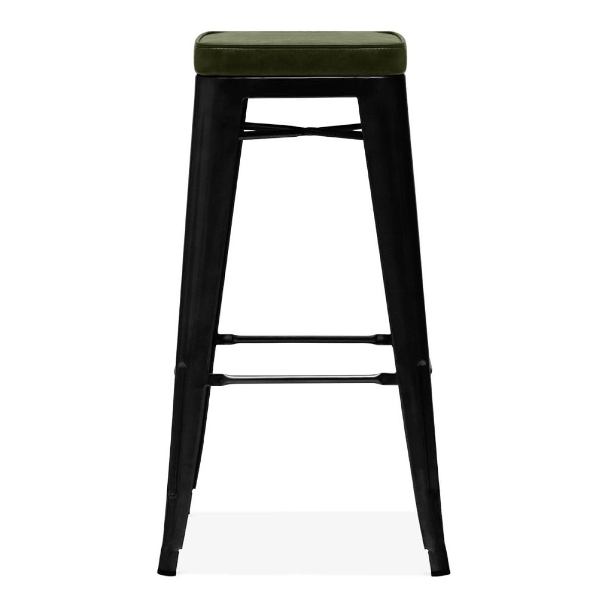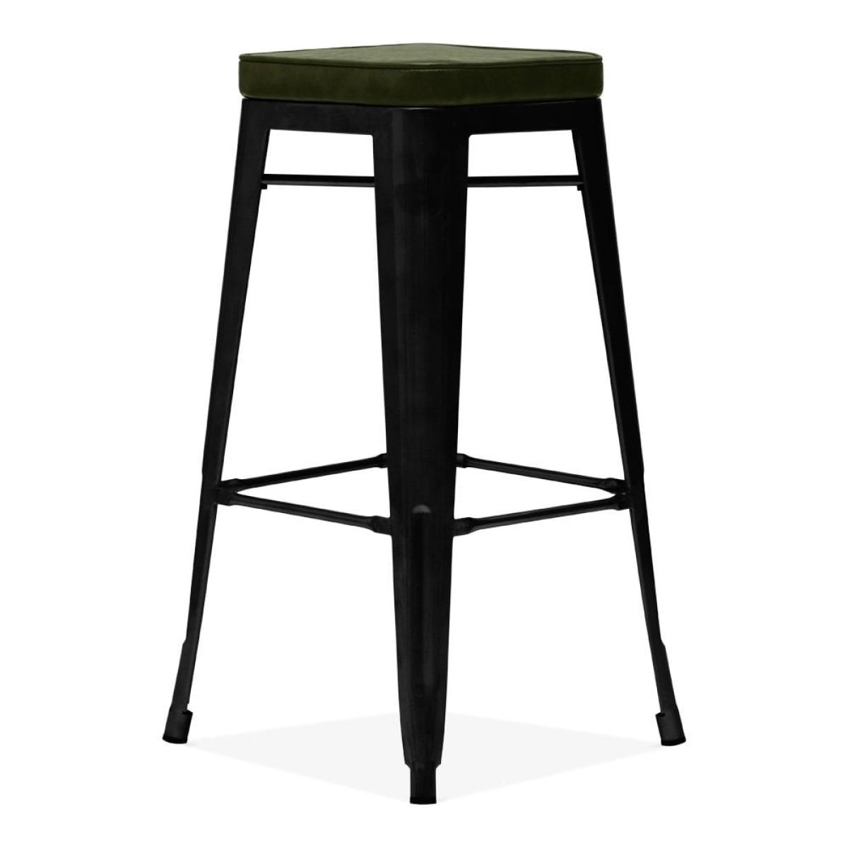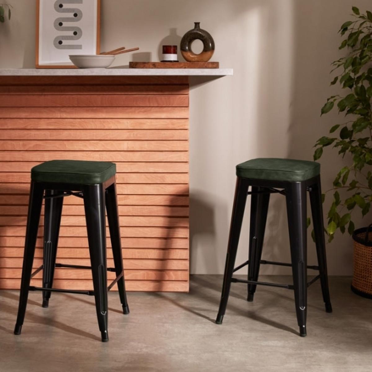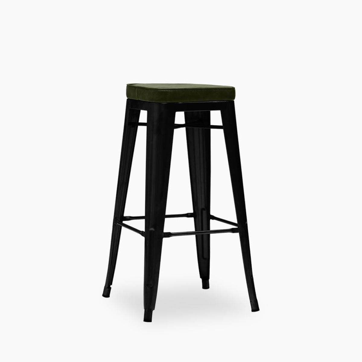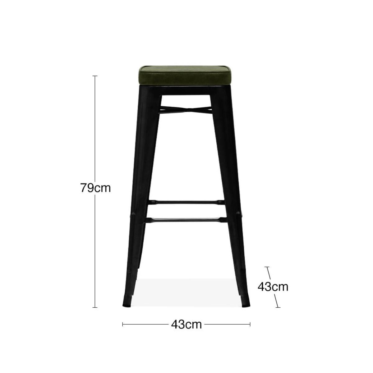 Inspired by Xavier Pauchard Tolix range, this industrial rustic style showcases a sturdy metal frame in a matte black finish with a green faux leather seat. The Tolix Bar Stool is the epitome of industrial design in a classic versatile style, not to mention durable; perfect for kitchen islands and modern dining spaces. An ideal space-saving solution, the Tolix Stool range is easily stackable. The name Tolix and Xavier Pauchard is only used to describe the characteristics of the goods made to the original design, and not as a trademark.   View The Tolix Range