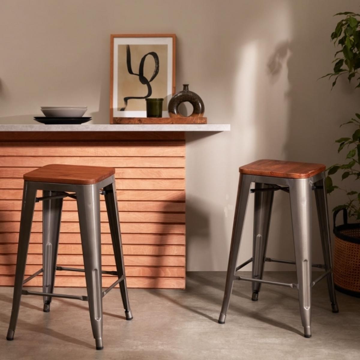 Inspired by Xavier Pauchard Tolix range, this industrial rustic style showcases a sturdy metal frame in a gunmetal finish with a natural elm wood seat. The Tolix Kitchen Stool is the epitome of industrial design in a classic versatile style, not to mention durable; perfect for kitchen islands and modern dining spaces. An ideal space-saving solution, the Tolix Stool range is easily stackable. The name Tolix and Xavier Pauchard is only used to describe the characteristics of the goods made to the original design, and not as a trademark.   View The Tolix Range