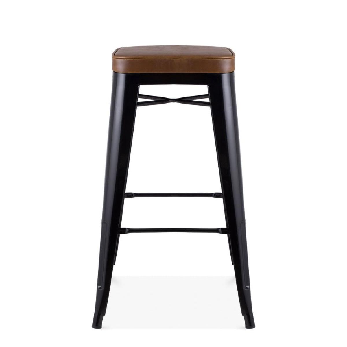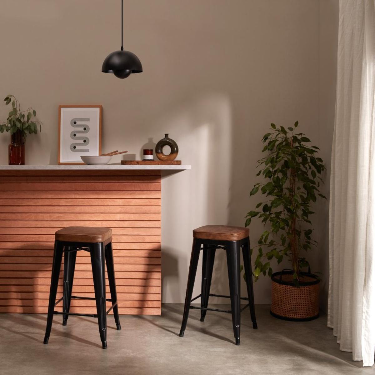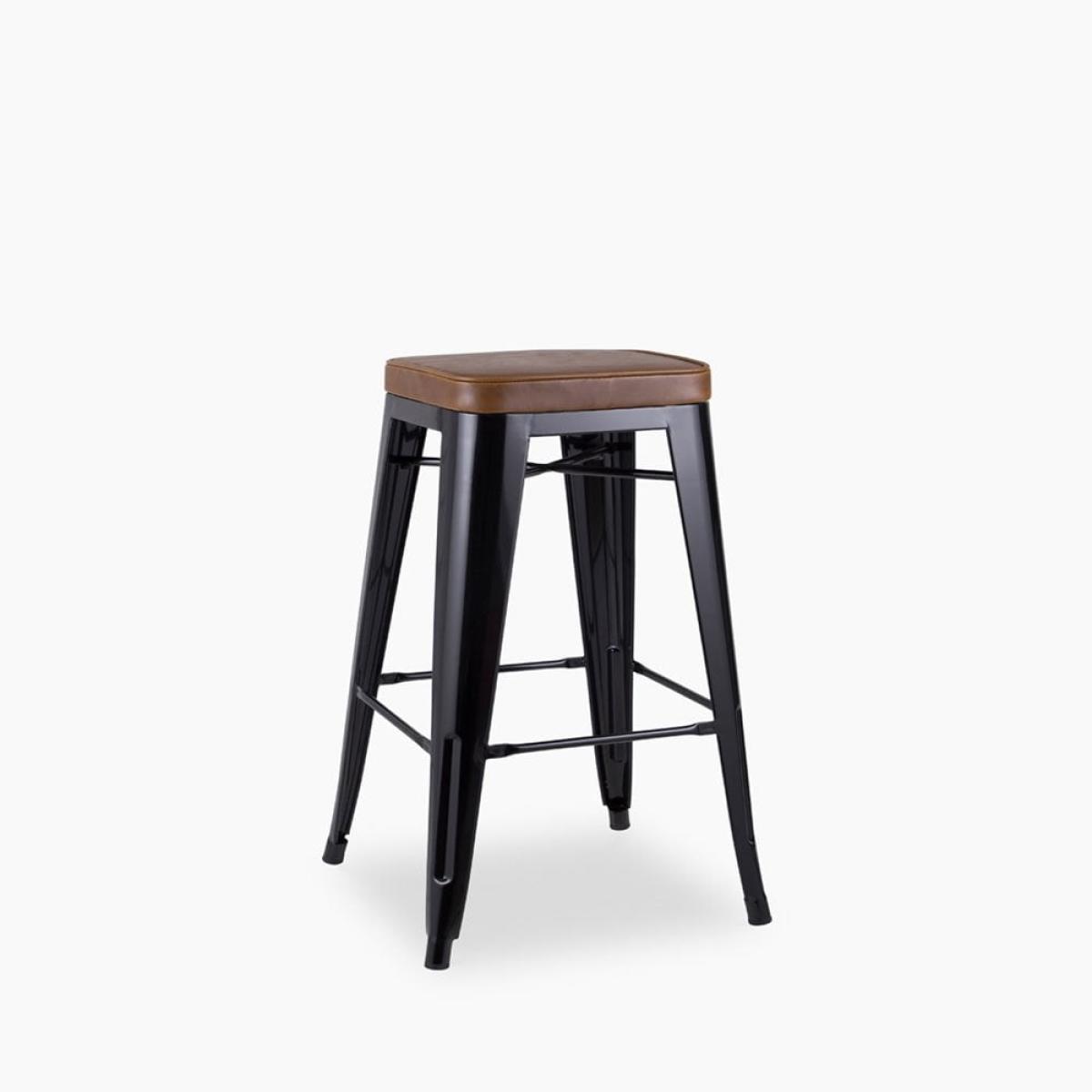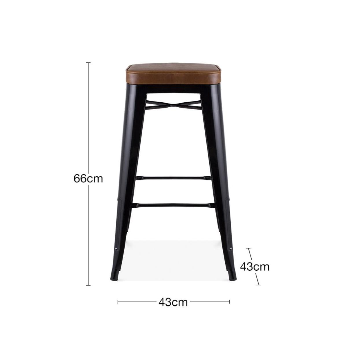 Inspired by Xavier Pauchard Tolix range, this industrial rustic style showcases a sturdy metal frame in a black metal finish with a tan faux leather upholstered seat. The Tolix Kitchen Stool is the epitome of industrial design in a classic versatile style, not to mention durable; perfect for kitchen islands and modern dining spaces. An ideal space-saving solution, the Tolix Stool range is easily stackable. The name Tolix and Xavier Pauchard is only used to describe the characteristics of the goods made to the original design, and not as a trademark.   View The Tolix Range