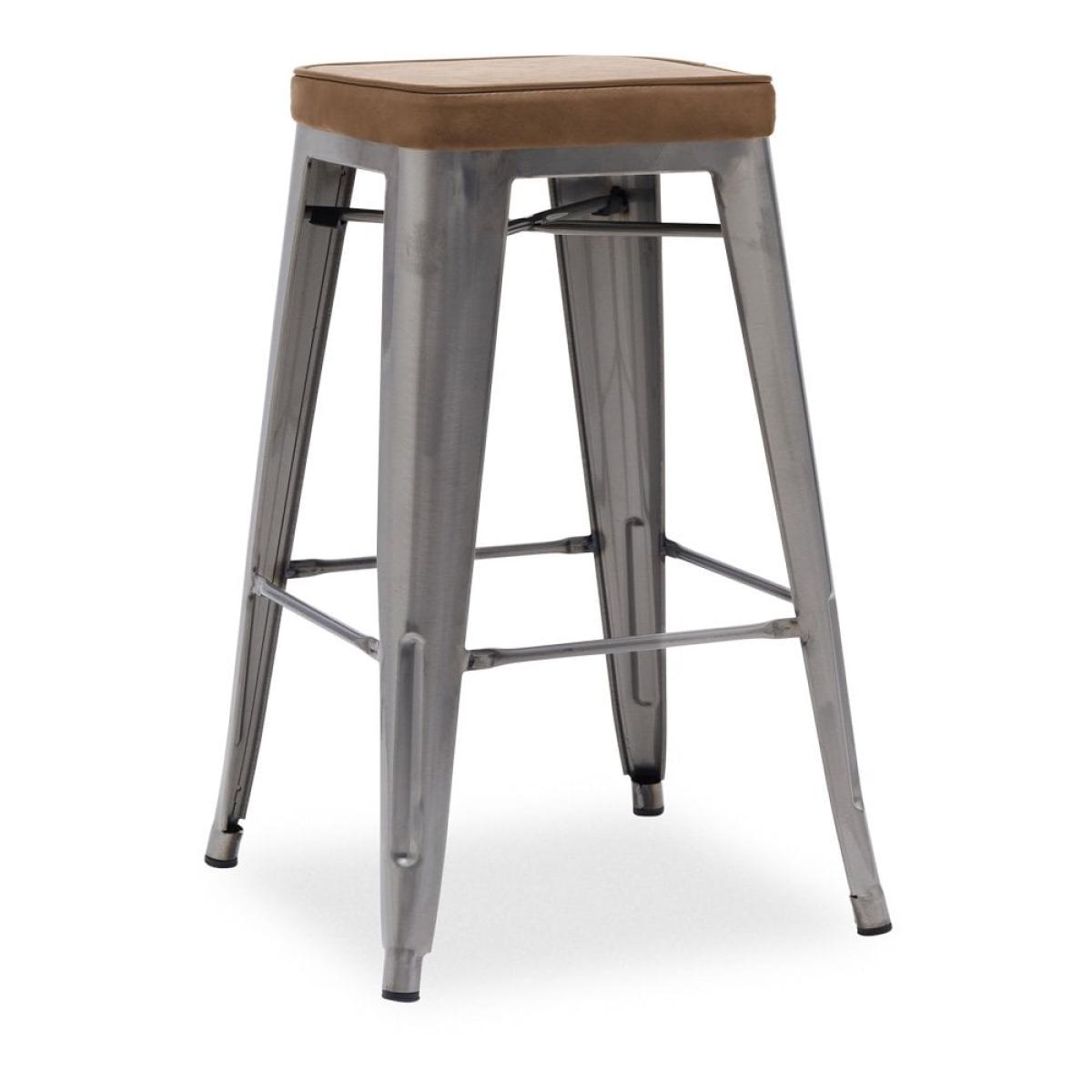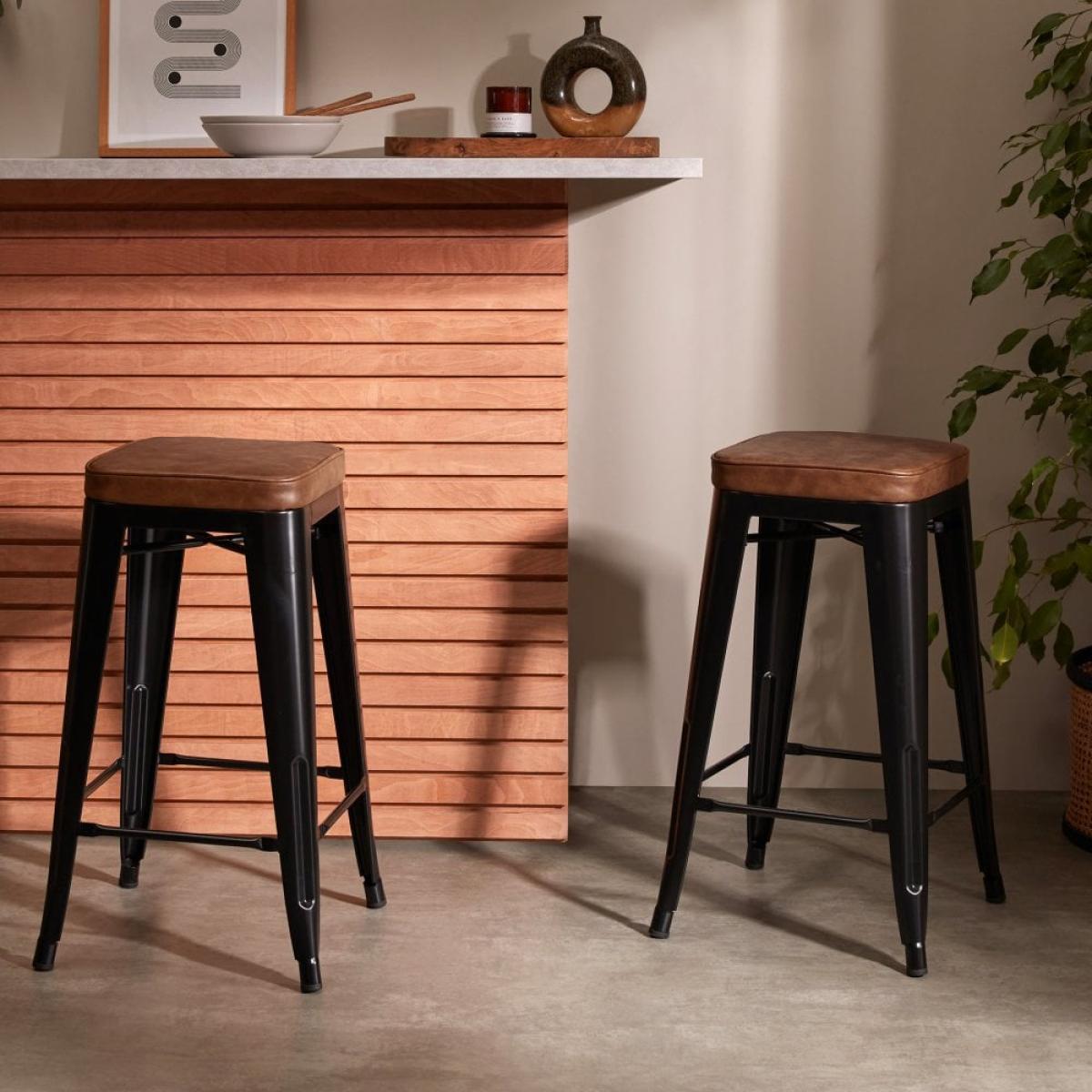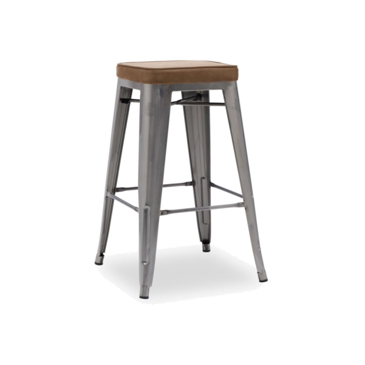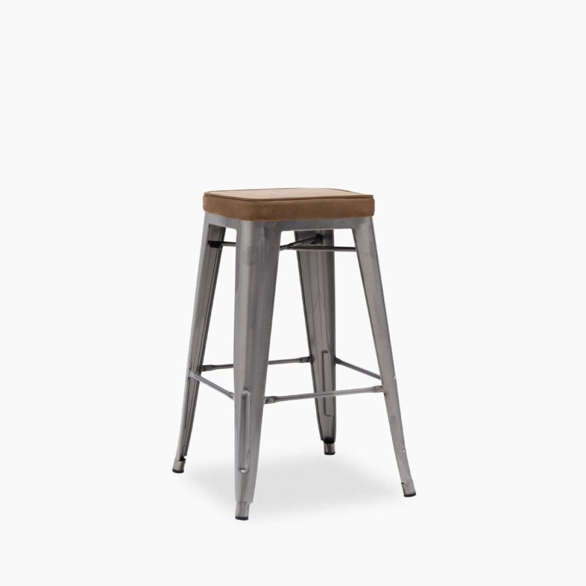 Inspired by Xavier Pauchard Tolix range, this industrial rustic style showcases a sturdy metal frame in a gunmetal finish with a tan faux leather upholstered seat. The Tolix Kitchen Stool is the epitome of industrial design in a classic versatile style, not to mention durable; perfect for kitchen islands and modern dining spaces. An ideal space-saving solution, the Tolix Stool range is easily stackable. The name Tolix and Xavier Pauchard is only used to describe the characteristics of the goods made to the original design, and not as a trademark.   View The Tolix Range