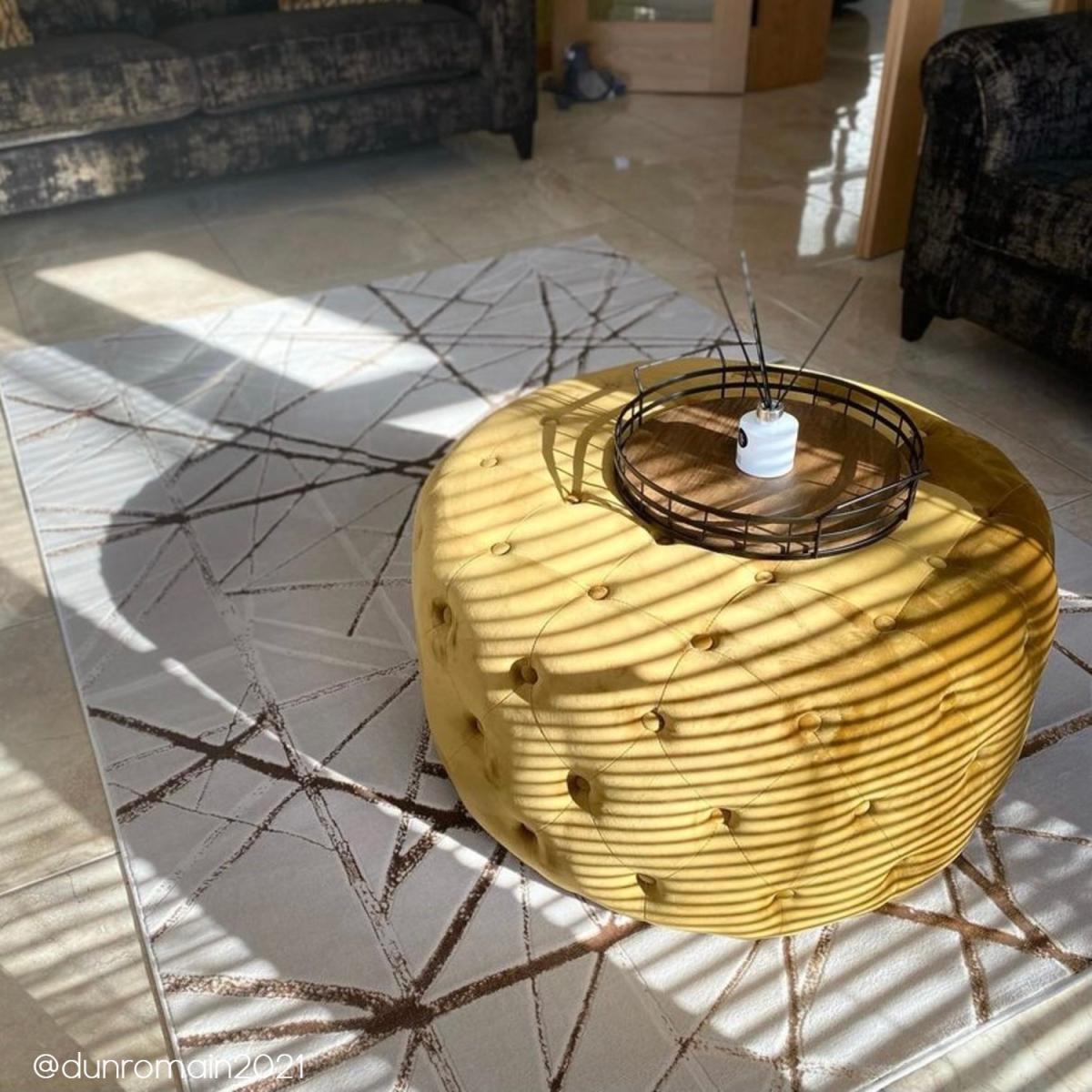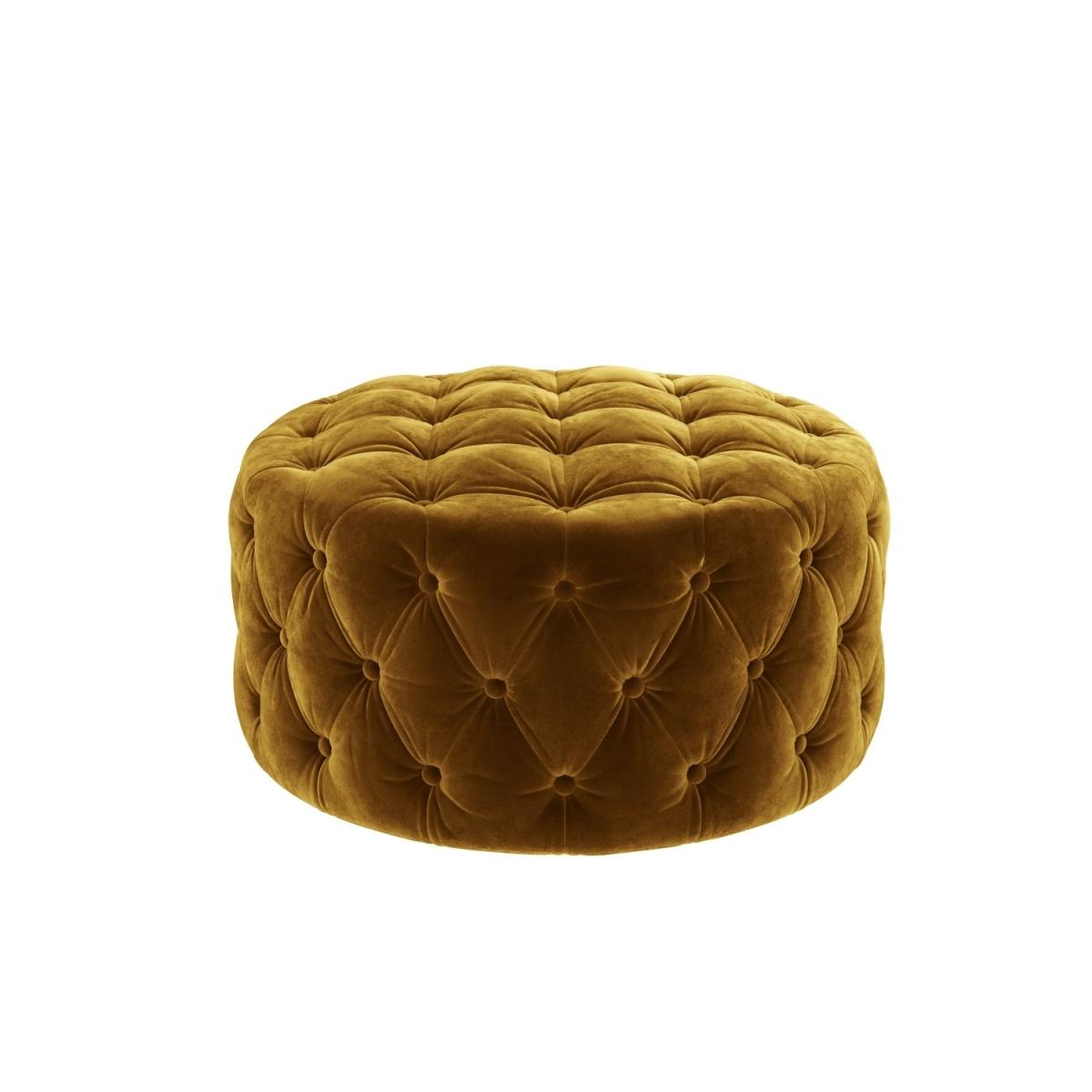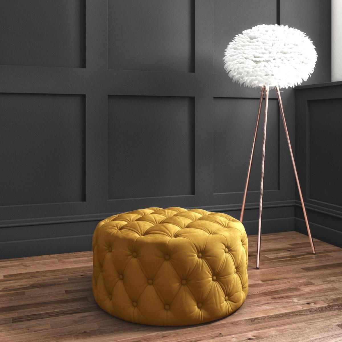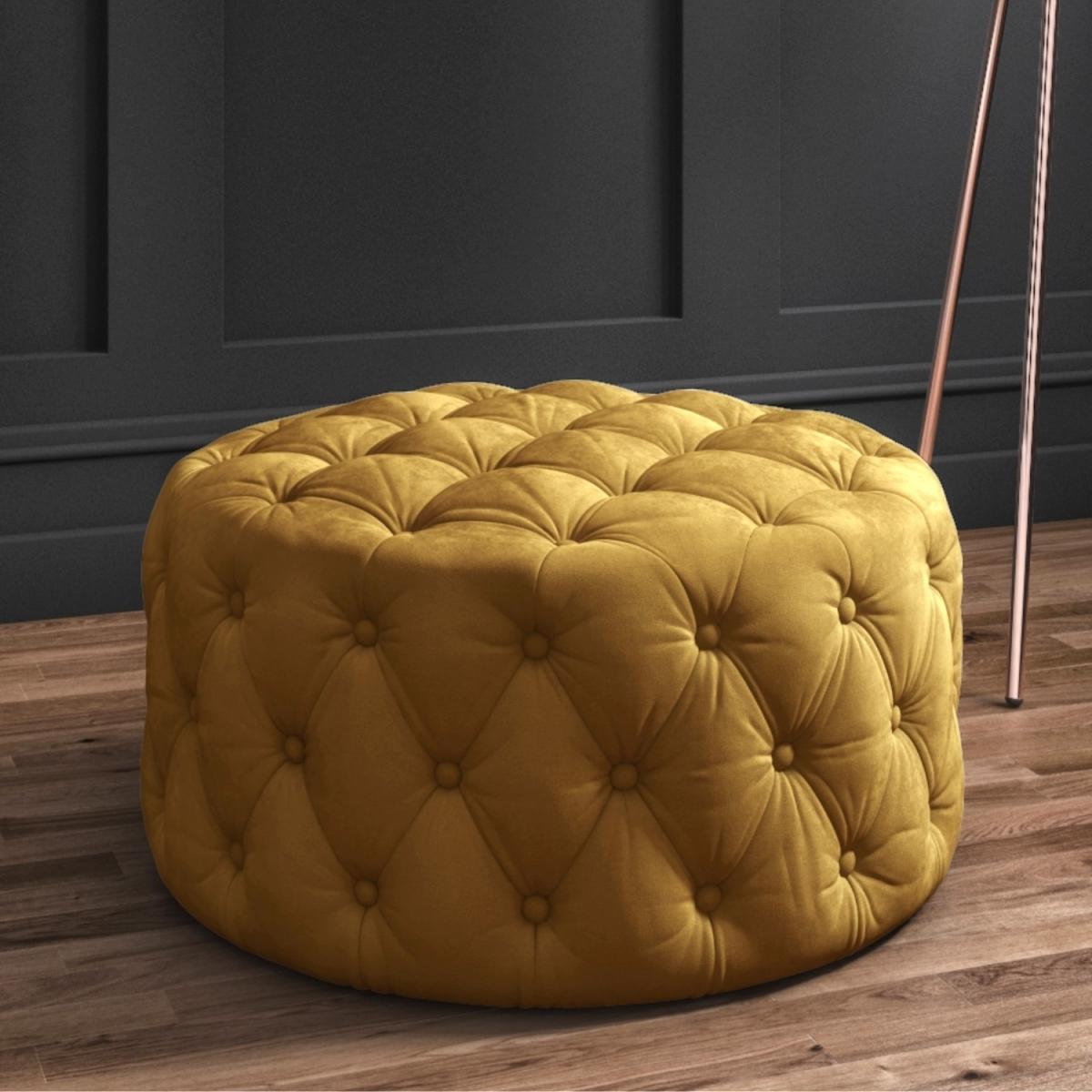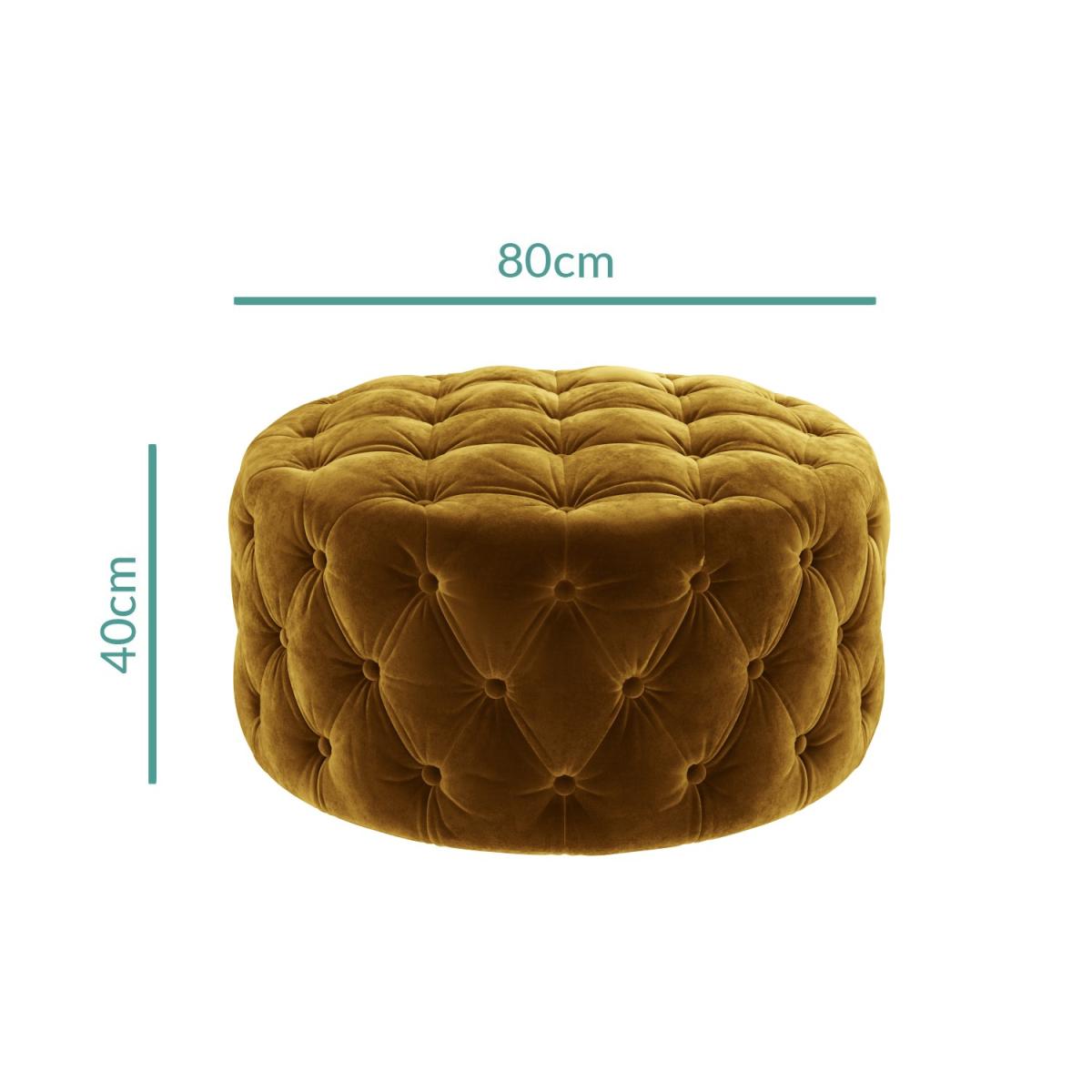 Features we love Luxuriously soft velvet upholstery offers a piece that feels amazing to the touch. Deep button detailing creates an instant focal point and unique piece. At 80cm wide there's plenty of room to spread out and relax. It's really versatile - use it to put up your feet or as an extra seat when guests come to visit. Fully assembled and ready to use – you can enjoy this piece as soon as you get it home All about me. Offering the perfect place to put your feet up after a long day or a spare seat when you've got guests the Xena pouffe is a practical yet elegant addition that suits any home. With deep button detailing this piece has a unique appearance making it the perfect focal point in any living room bedroom or almost anywhere in the home. Beautifully soft velvet upholstery helps to produce a piece that feels as good as it looks. This piece has a wide 80cm diameter giving you plenty of space to spread out and relax in comfort. Use it in the bedroom alongside your dressing table for the perfect place to get ready in the morning – it's a really versatile piece so it's your choice how you put it to use; all we can tell you is that you won't be disappointed with its appearance and the comfort it offers. Such elegance is delivered ready assembled and ready to use so when you get it home you can put it to use straight away. Need to know. Dimensions. H 40 x W 80 x D 80cm Colour. Dark Mustard Yellow Material. Plywood and; solid wood frame Finish. Velvet upholstery Assembly required. No.