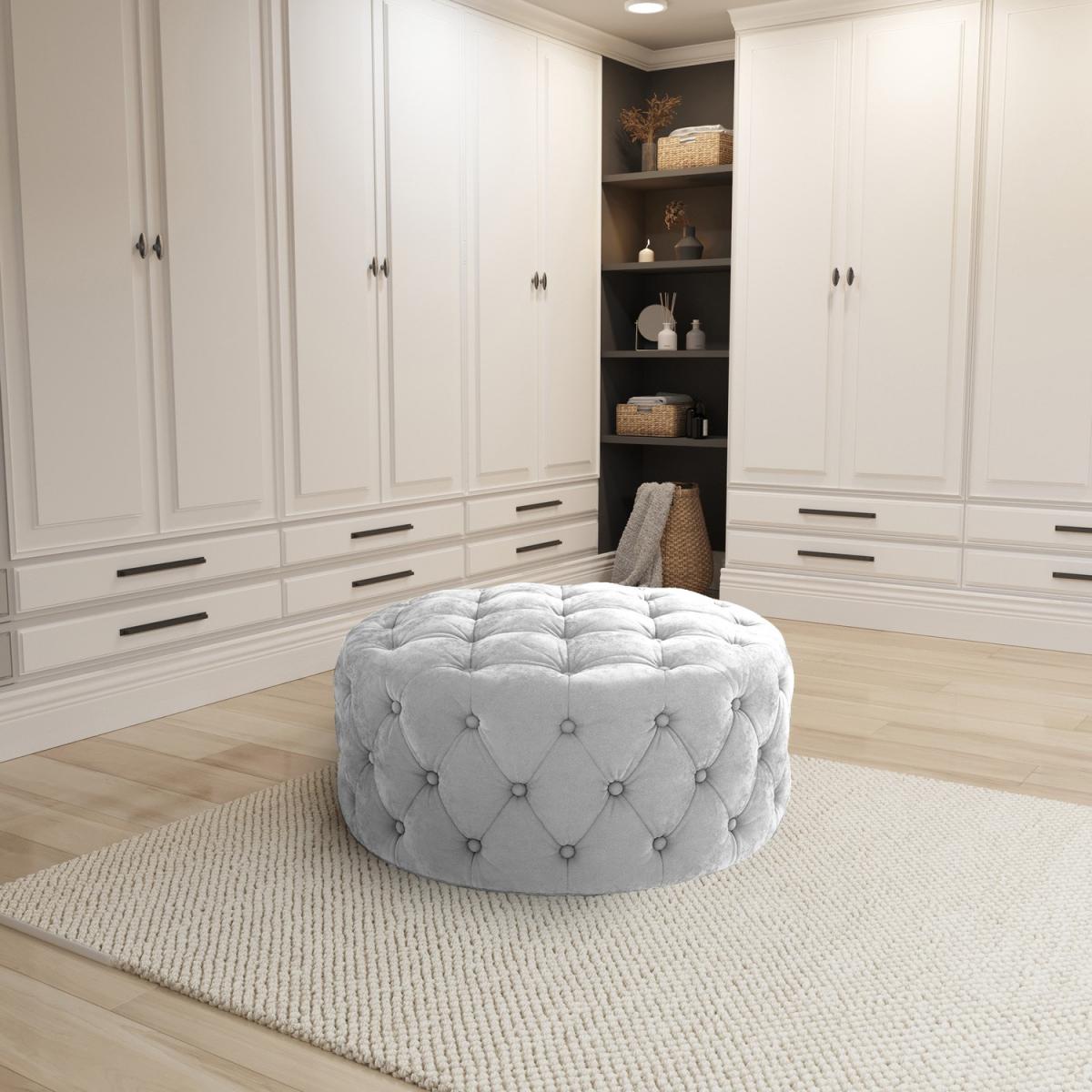 Offering the perfect place to put your feet up after a long day or a spare seat when you've got guests, the Xena pouffe is a practical yet elegant addition that suits any home. With deep button detailing, this piece has a unique appearance, making it the perfect focal point in any living room, bedroom or almost anywhere in the home. Beautifully soft velvet upholstery helps to produce a piece that feels as good as it looks. This piece has a wide, 80cm diameter, giving you plenty of space to spread out and relax in comfort. Use it in the bedroom alongside your dressing table for the perfect place to get ready in the morning – it's a really versatile piece, so it's your choice how you put it to use; all we can tell you is that you won't be disappointed with its appearance and the comfort it offers. Such elegance is delivered ready assembled and ready to use so, when you get it home, you can put it to use straight away.