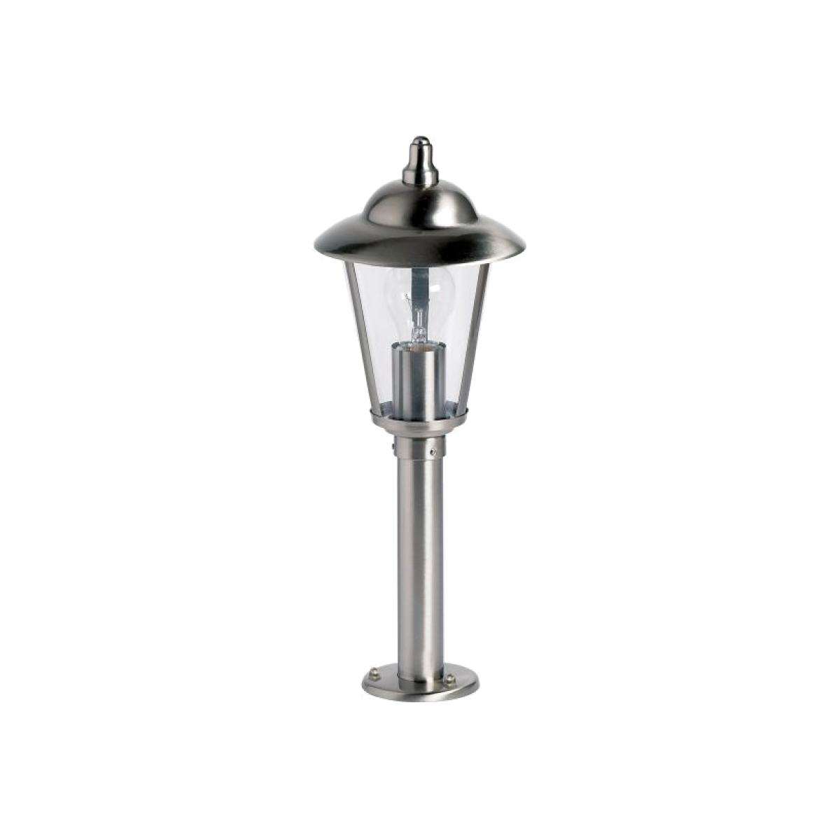 Outdoor post constructed from stainless steel and polycarbonate, and comes with a clear vandal resistant diffuser. Dimmable and suitable for use with LED lamps. Matching items available. Colour: Silver. Lamp Holder Type: E27. Bulb Type: GLS. Maximum Bulb Wattage: 60. Bulb Included: No. Number of Bulbs: 1.