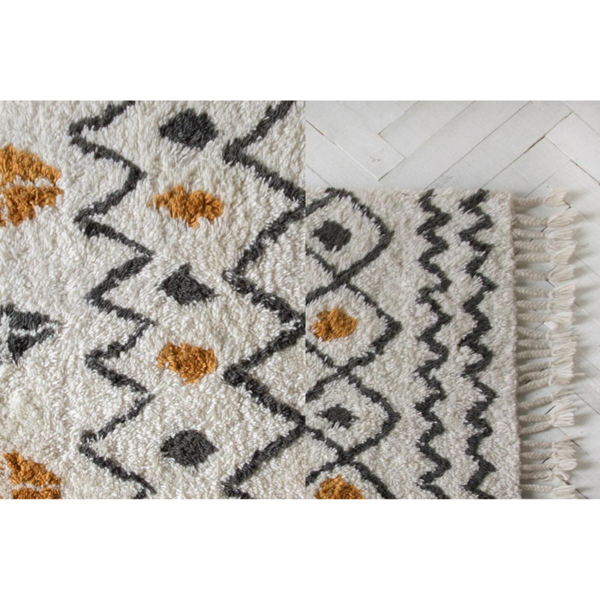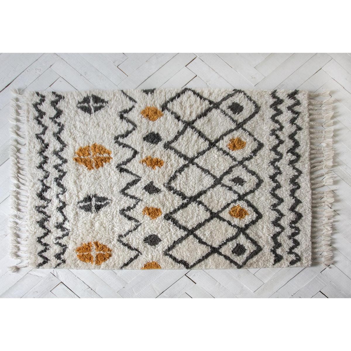 Make room for the Ximena rug, a charismatic beautifier for wooden floors and modern décors. Handwoven using high-quality wool fibres, the Ximena is full of spirit and brings it to light it with a monochrome geo-inspired pattern with lively dashes of ochre. Braided tasselled edges complete the look, adding texture and edge to this high-pile rug. The Ximena works well with any décor or room, but we believe it deserves a special place such as the living room, where it can take the reins of the décor and shine in its very own right.