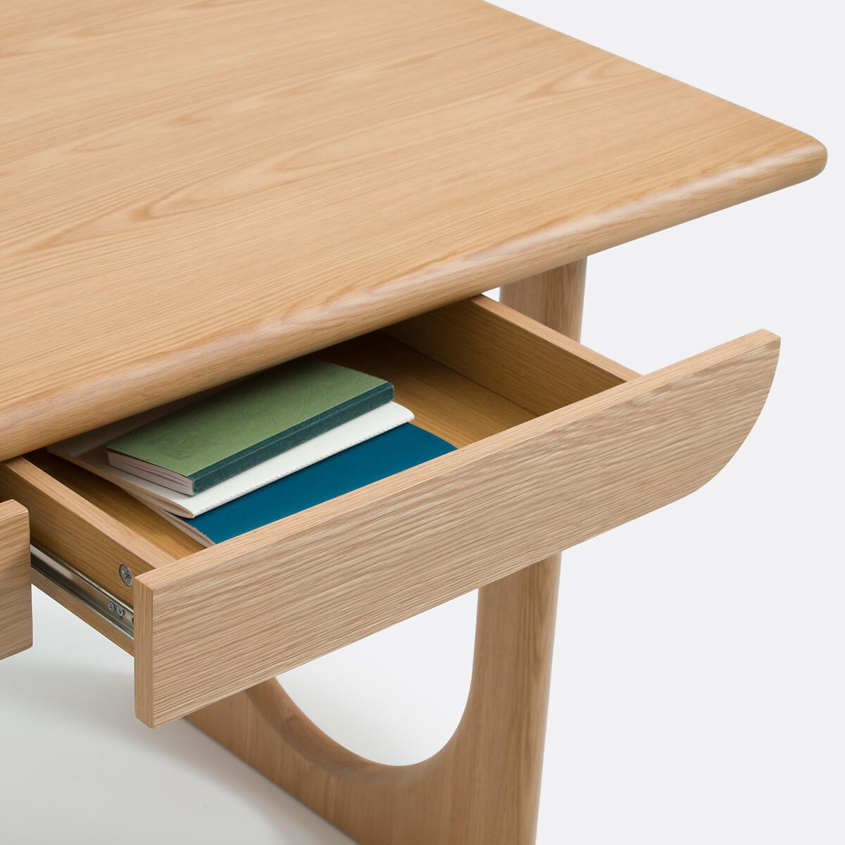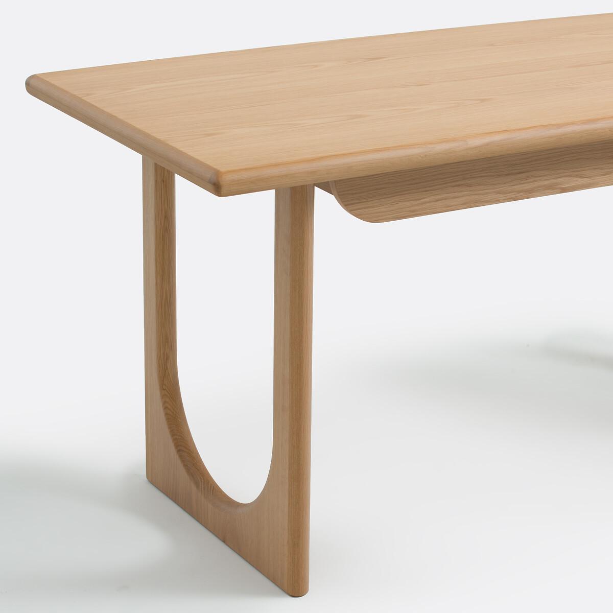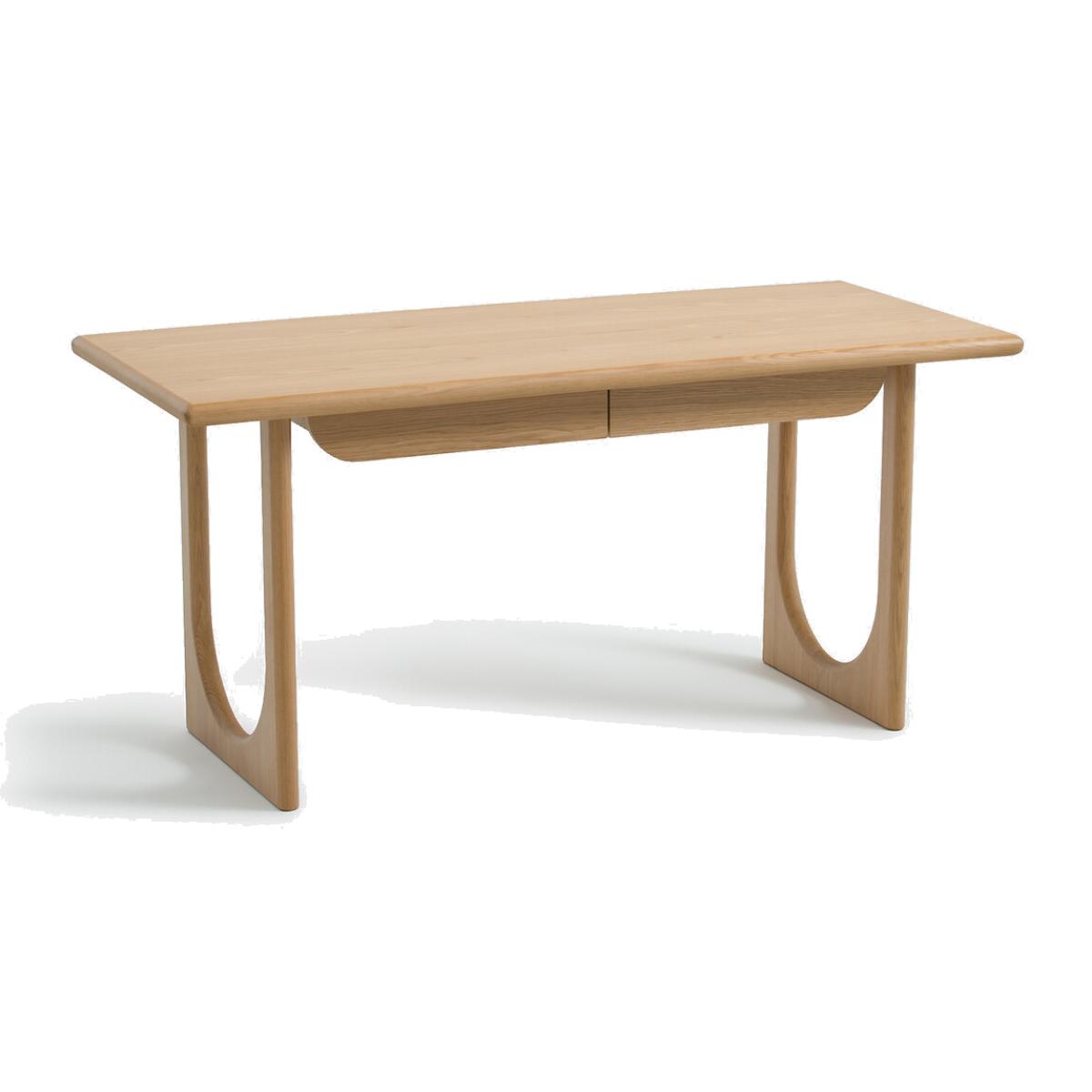The Douve Desk is one of the Signatures of La Redoute Intérieurs. A selection of exclusive creations, designed by our in-house design studio. Inspiring, easy to live with, on-trend... these products have become our customers' favourites. and no doubt yours!. An internal design by Adrien Edel :"The Douve Desk stands out for its contemporary style, Nordic spirit and sculptural design. FSC® certified solid oak, thick top with rounded edges and inverted arch base: all the beauty of carpentry. "Product Details • Large work surface • 2 drawers with steel slides • Legs and tray surround in solid oak, top in MDF and oak veneered particleboard. • Nitrocellulose varnish finish (legs) and polyurethane finish (Tray) • FSC® Mixed certified woodDimensions. Overall • Width: 160cm • Height: 76.5cm • Depth: 70cm • Weight: 42kg. Usable space • Drawer:W42.7 x H6.1 x D38.5 cmDelivery:. This product is sold for self-assembly. Available for home delivery. Note! Please check that all access points are large enough to accommodate your delivery (doors, stairs, lifts). • WOOD FROM MORE SUSTAINABLY MANAGED FORESTS AND CONTROLLED SOURCES. FSC® Mix wood contains at least 70% FSC® certified and/or recycled wood, the remainder being FSC® controlled wood. Dimensions and weight of parcel2 parcels • W70 x H20 x D80 cm. 35kg • W86.5x H20 x D68 cm. 15kg