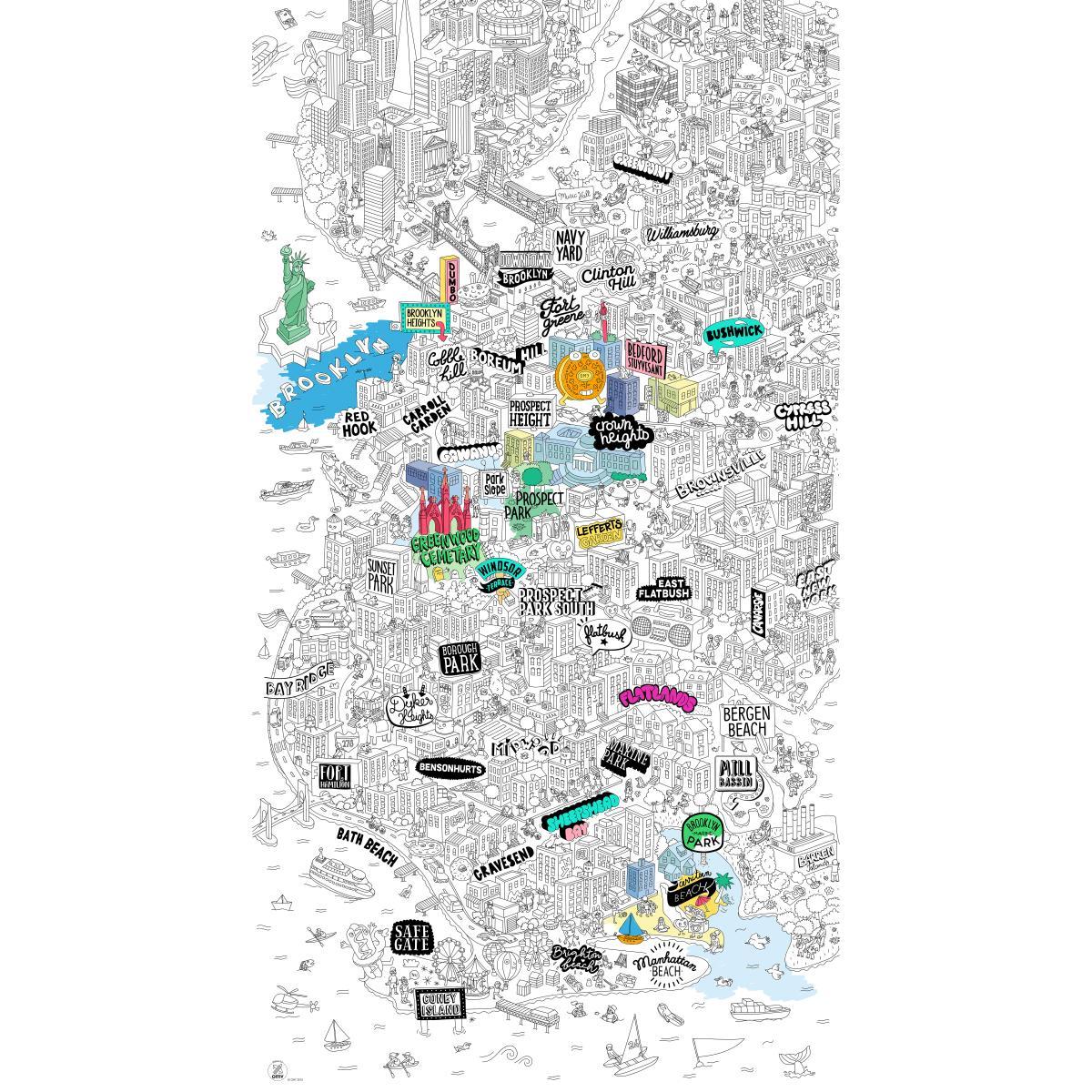 XXL Brooklyn Colouring poster - 180 x 100 cm by OMY Design & Play White/Black