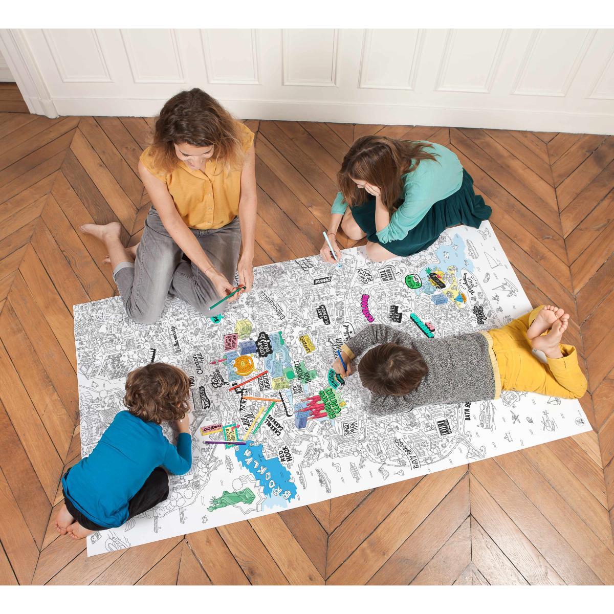 A giant 1,80 meter long coloring page ! 71 inches long! No more just coloring in the lines, now kids can express themselves alone or with friends, without limits ! Endless possibilities, as a tablecloth, wallpaper, on the ground, wherever.