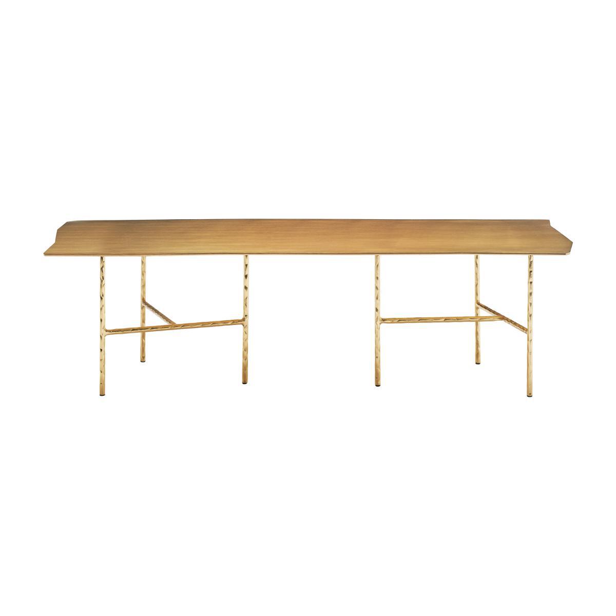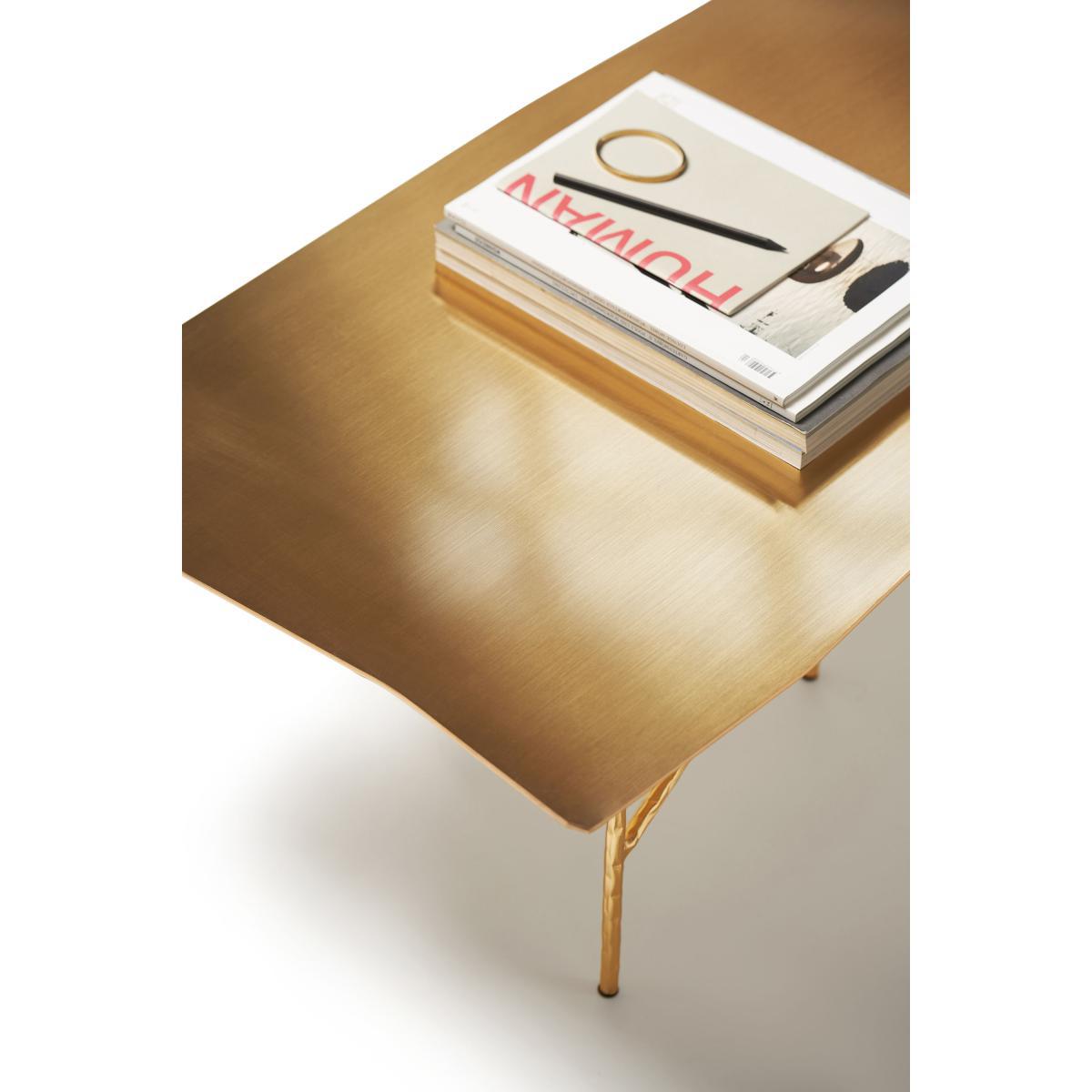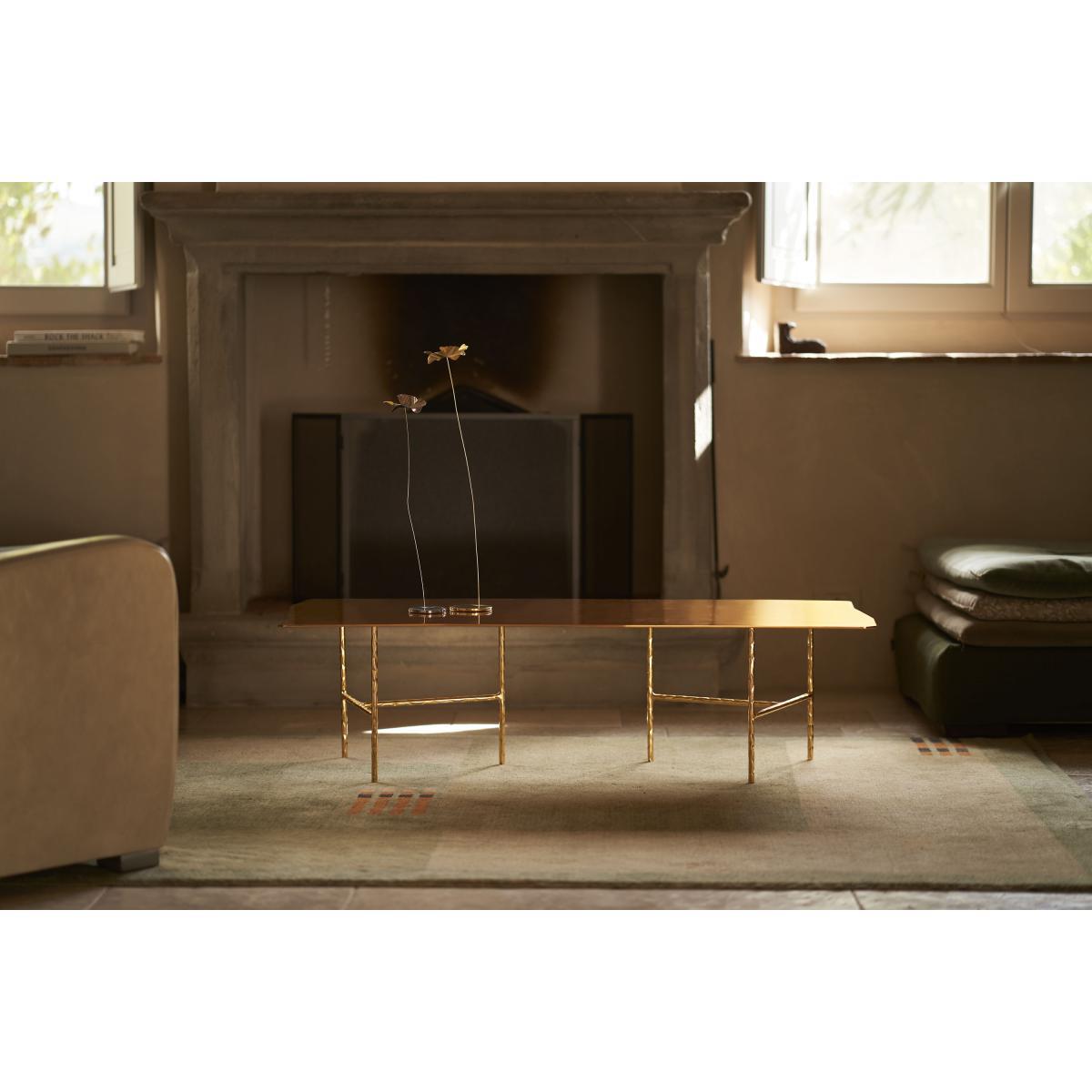 These metal tables have a glamorous industrial style, playing on the contrast between refined materials and raw shapes. The XXX table has a fine galvanised nickel topplated in 24-carat gold: a precious, ultra-chic finish! The asymmetric tabletop has irregular contours that create an exquisite hand-crafted feel. The wrought iron base plated in 24-carat gold has a raw aspect: the irregular, imperfect surface gives this piece of furniture a special vibe. By reflecting all the random marks left by the tools used to make them, these pieces add a new twist to the industrial style. The very fine legs trace a clear, sleek line. This collection displays real "material culture" and showcases their use. It awakens deeply buried emotions linked to the details on the object and its crafting, touching on the universal. Designer Lapo Ciatti: “I dreamt of a table with a blurred outline, with undefined borders. A piece that communicates and transmits sensations - not limited to visual sensations. ”.