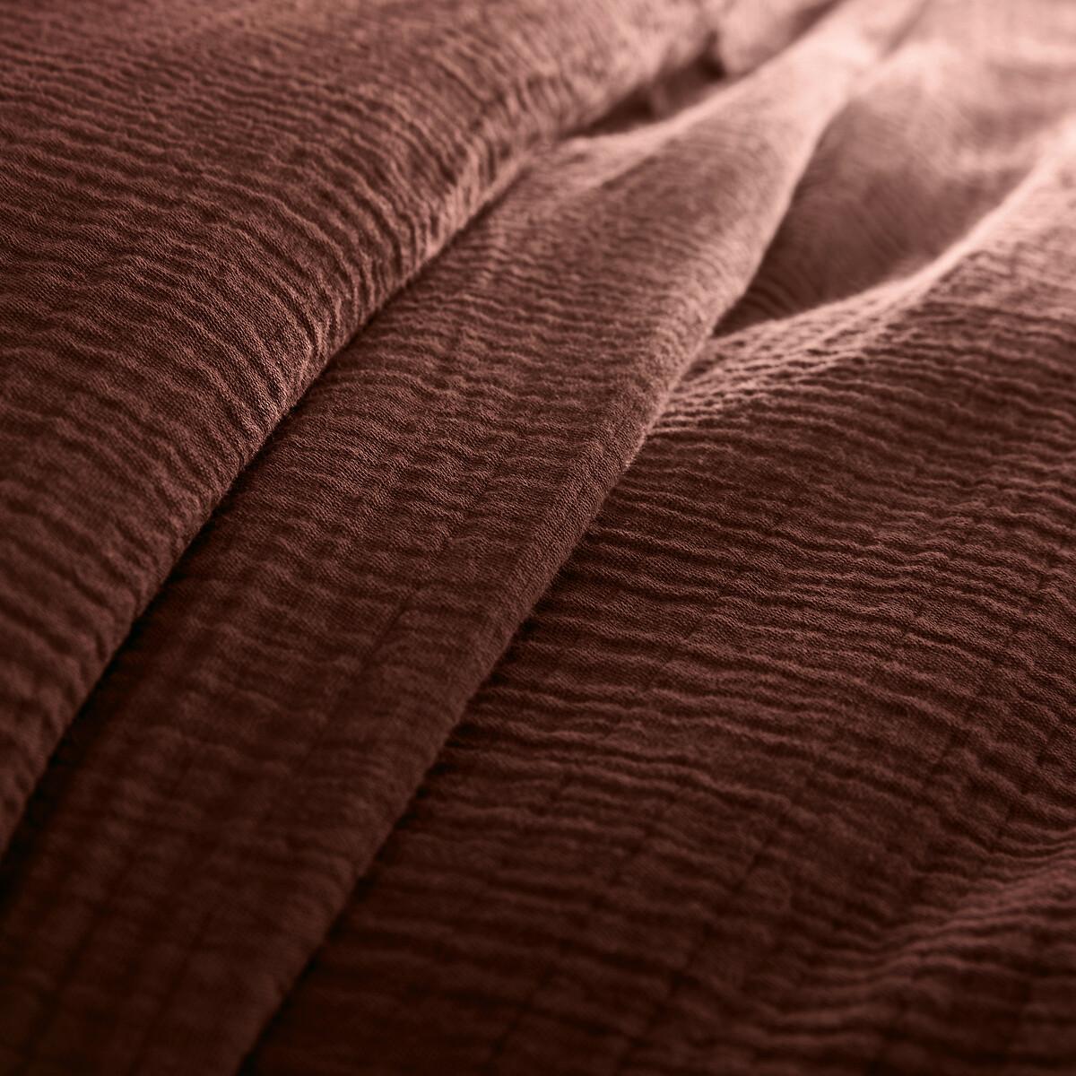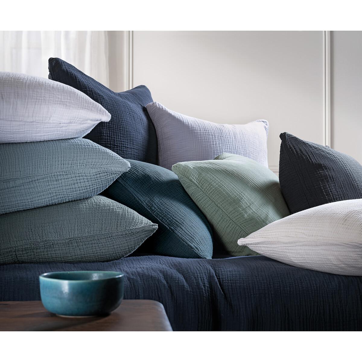 The Yafa duvet cover is made of cotton muslin. Made in Portugal. Product Details • 100% cotton • Organic cotton • Cotton muslin • 200 Thread Count: a common indicator for measuring the quality of fabric is the number of threads per cm². Different sensations are made possible thanks to the weaving and the number of threads present. Indeed, an optimal number of threads makes the bed linen particularly soft. • Straight buttoned hem Care Advice Follow our care tips to maintain the quality of your laundry • Machine washable at 40°C • Tumble dry at low temperature • Iron at low temperature • Do not dry clean. Sizes • 140 x 200cm: Single • 200 x 200cm: Double • 240 x 220cm: King • 260 x 240cm: Super King • Made in Europe. • Cotton from organic farming. Organic farming does not use any chemicals, pesticides, insecticides or GMOs. Produced with minimal impact on biodiversity. • OEKO-TEX® Standard 100. Standard 100 certification by OEKO-TEX® tests textile products for harmful substances via an independent, international label.