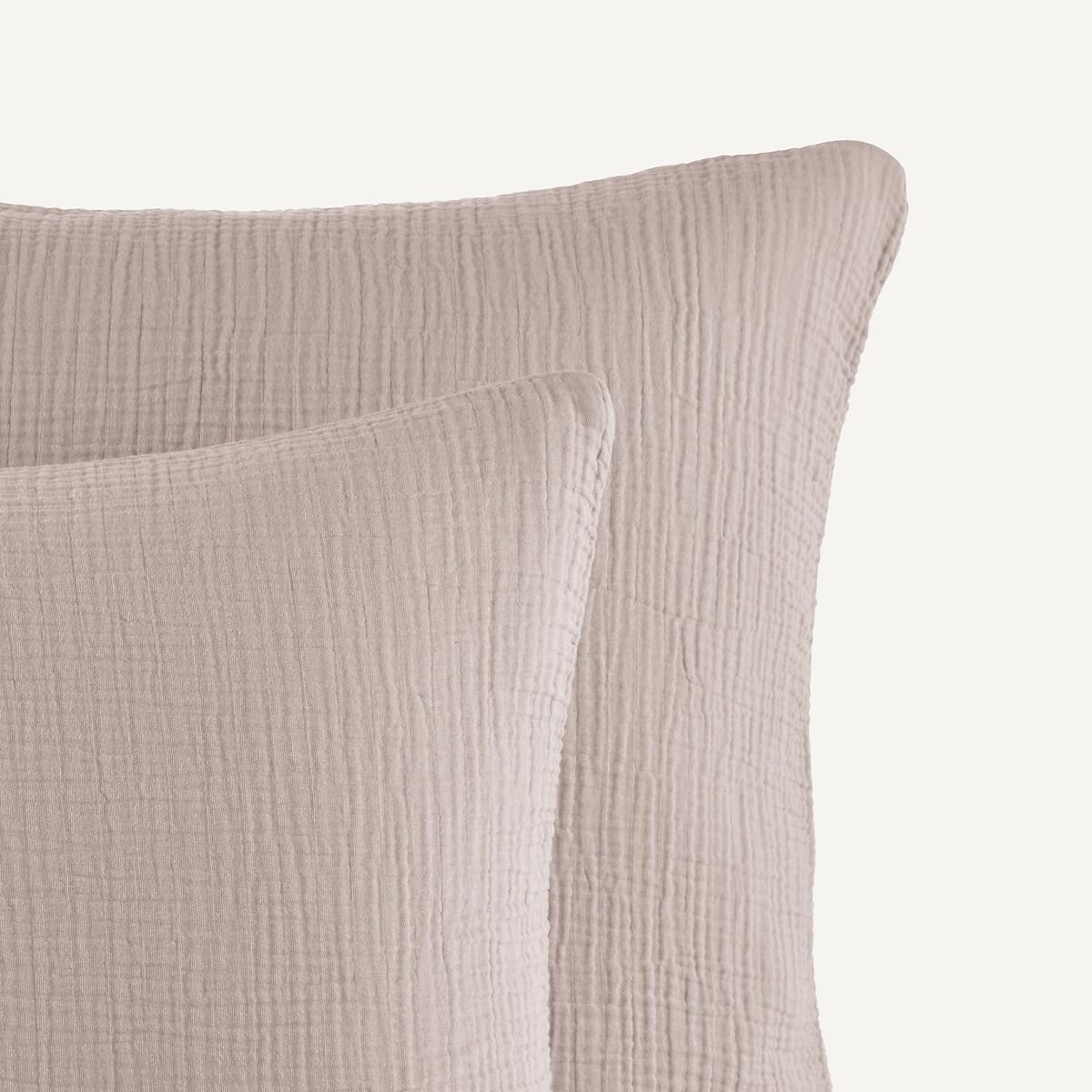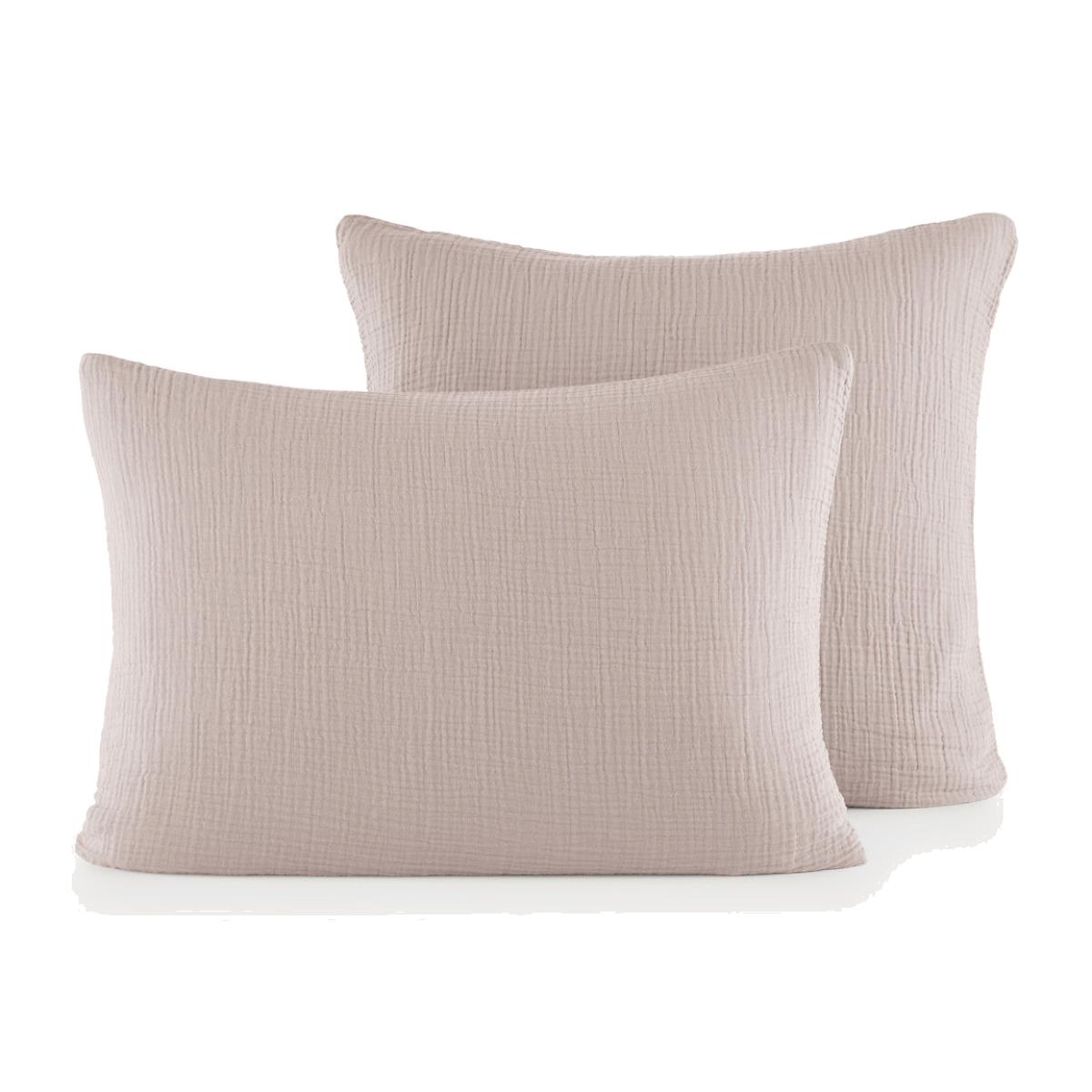 The Yafa pillowcase is made of cotton muslin. Made in Portugal.Product Details • 100% cotton • Organic cotton • Cotton muslin • 200 Thread Count: a common indicator for measuring the quality of fabric is the number of threads per cm². Different sensations are made possible thanks to the weaving and the number of threads present. Indeed, an optimal number of threads makes the bed linen particularly soft. Care Advice Follow our care tips to maintain the quality of your laundry • Machine washable at 40°C • Tumble dry at low temperature • Iron at low temperature • Do not dry clean. Dimensions • 50 x 70cm: Rectangular • 65 x 65cm: Square • MADE IN PORTUGAL. • Cotton from organic farming. Organic farming does not use any chemicals, pesticides, insecticides or GMOs. Produced with minimal impact on biodiversity. • OEKO-TEX® Standard 100. Standard 100 certification by OEKO-TEX® tests textile products for harmful substances via an independent, international label.