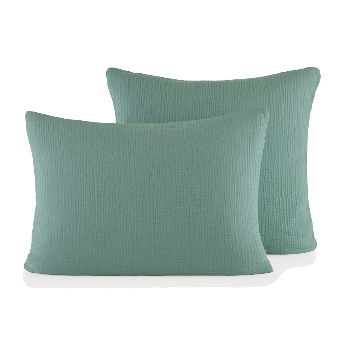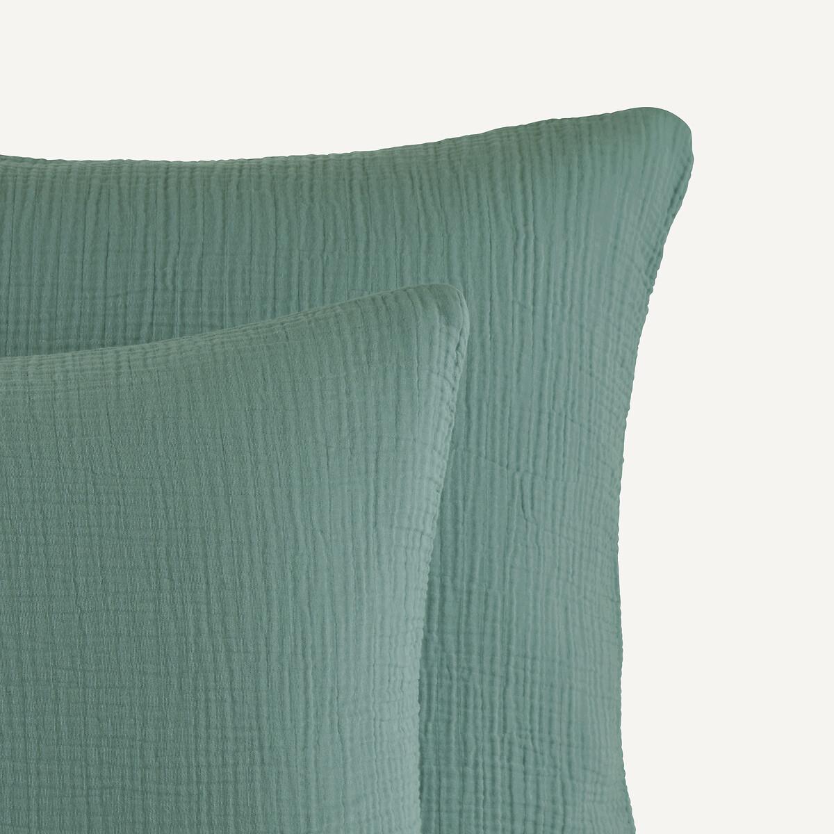 The Yafa pillowcase is made of cotton muslin. Made in Portugal.Product Details • 100% cotton • Organic cotton • Cotton muslin • 200 Thread Count: a common indicator for measuring the quality of fabric is the number of threads per cm². Different sensations are made possible thanks to the weaving and the number of threads present. Indeed, an optimal number of threads makes the bed linen particularly soft. Care Advice Follow our care tips to maintain the quality of your laundry • Machine washable at 40°C • Tumble dry at low temperature • Iron at low temperature • Do not dry clean. Dimensions • 50 x 70cm: Rectangular • 65 x 65cm: Square • MADE IN PORTUGAL. • Cotton from organic farming. Organic farming does not use any chemicals, pesticides, insecticides or GMOs. Produced with minimal impact on biodiversity. • OEKO-TEX® Standard 100. Standard 100 certification by OEKO-TEX® tests textile products for harmful substances via an independent, international label.
