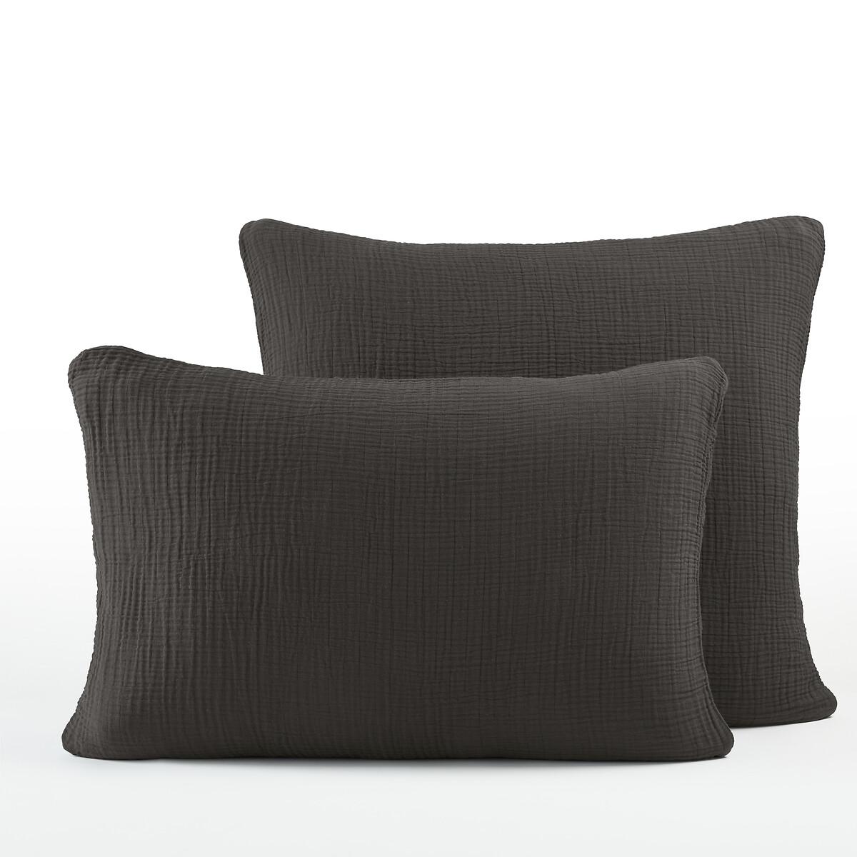 The Yafa pillowcase is made of cotton muslin. Made in Portugal.Product Details • 100% cotton • Organic cotton • Cotton muslin • 200 Thread Count: a common indicator for measuring the quality of fabric is the number of threads per cm². Different sensations are made possible thanks to the weaving and the number of threads present. Indeed, an optimal number of threads makes the bed linen particularly soft. Care Advice Follow our care tips to maintain the quality of your laundry • Machine washable at 40°C • Tumble dry at low temperature • Iron at low temperature • Do not dry clean. Dimensions • 50 x 70cm: Rectangular • 65 x 65cm: Square • MADE IN PORTUGAL. • Cotton from organic farming. Organic farming does not use any chemicals, pesticides, insecticides or GMOs. Produced with minimal impact on biodiversity. • OEKO-TEX® Standard 100. Standard 100 certification by OEKO-TEX® tests textile products for harmful substances via an independent, international label.