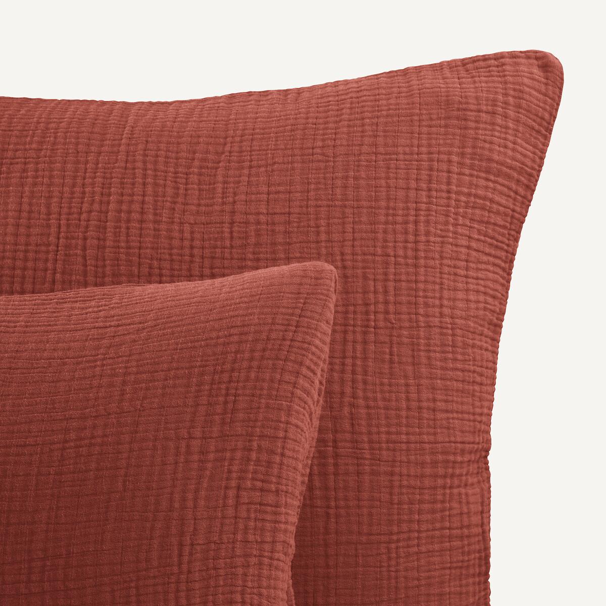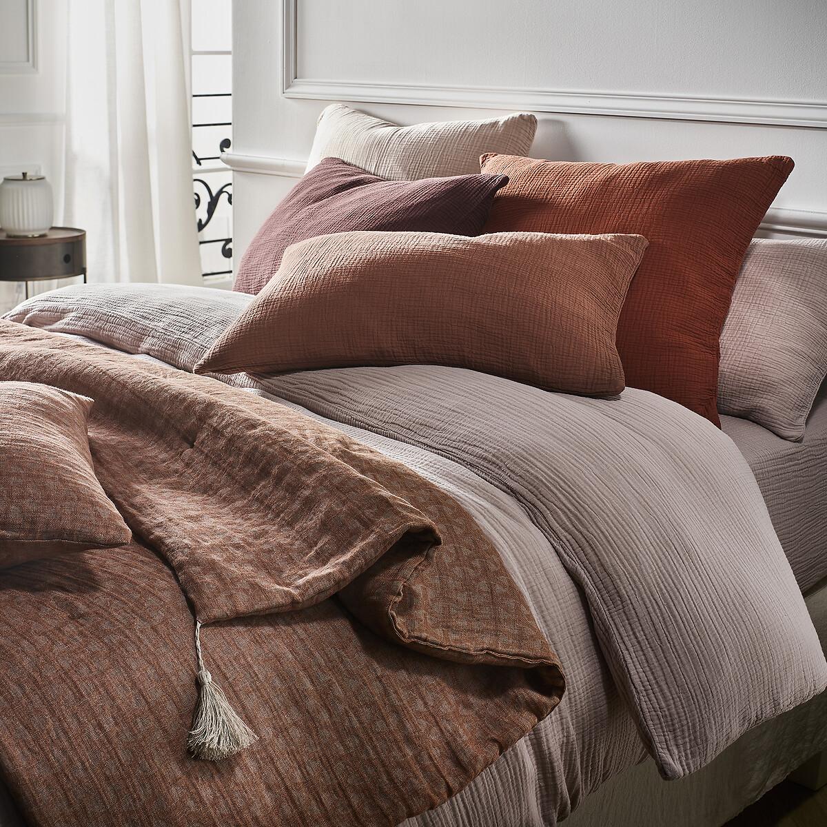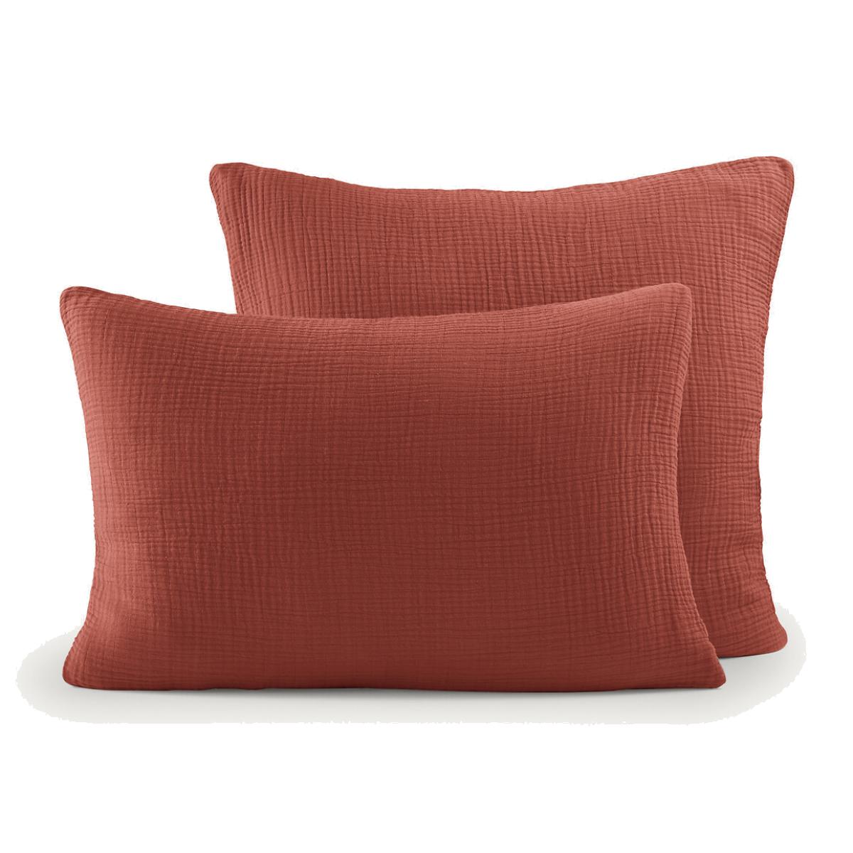 The Yafa pillowcase is made of cotton muslin. Made in Portugal.Product Details • 100% cotton • Organic cotton • Cotton muslin • 200 Thread Count: a common indicator for measuring the quality of fabric is the number of threads per cm². Different sensations are made possible thanks to the weaving and the number of threads present. Indeed, an optimal number of threads makes the bed linen particularly soft. Care Advice Follow our care tips to maintain the quality of your laundry • Machine washable at 40°C • Tumble dry at low temperature • Iron at low temperature • Do not dry clean. Dimensions • 50 x 70cm: Rectangular • 65 x 65cm: Square • MADE IN PORTUGAL. • Cotton from organic farming. Organic farming does not use any chemicals, pesticides, insecticides or GMOs. Produced with minimal impact on biodiversity. • OEKO-TEX® Standard 100. Standard 100 certification by OEKO-TEX® tests textile products for harmful substances via an independent, international label.