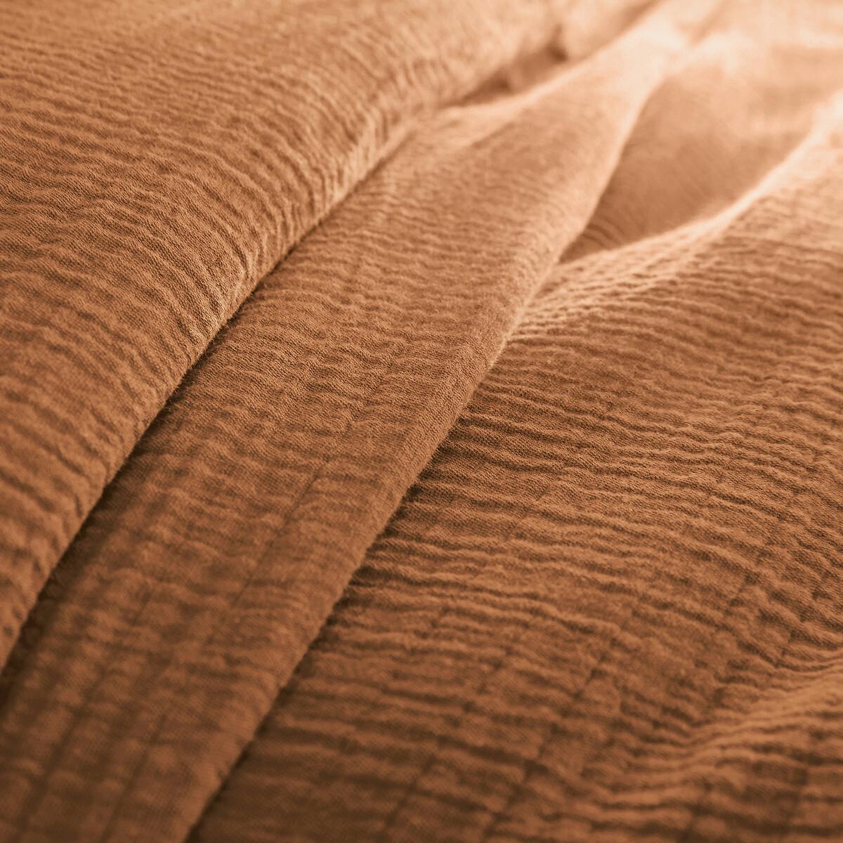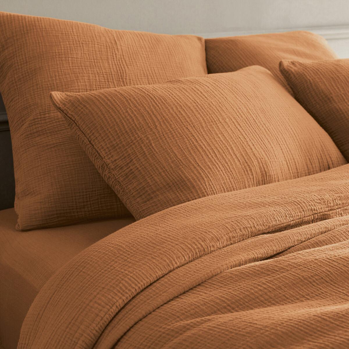 The Yafa duvet cover is made of cotton muslin. Made in Portugal.Product Details • 100% cotton • Organic cotton • Cotton muslin • 200 Thread Count: a common indicator for measuring the quality of fabric is the number of threads per cm². Different sensations are made possible thanks to the weaving and the number of threads present. Indeed, an optimal number of threads makes the bed linen particularly soft. • Straight buttoned hem Care Advice Follow our care tips to maintain the quality of your laundry • Machine washable at 40°C • Tumble dry at low temperature • Iron at low temperature • Do not dry clean. Dimensions • 140 x 200cm: Single • 200 x 200cm: Double • 240 x 220cm: King • 260 x 240cm: King • MADE IN PORTUGAL. • Cotton from organic farming. Organic farming does not use any chemicals, pesticides, insecticides or GMOs. Produced with minimal impact on biodiversity. • OEKO-TEX® Standard 100. Standard 100 certification by OEKO-TEX® tests textile products for harmful substances via an independent, international label.