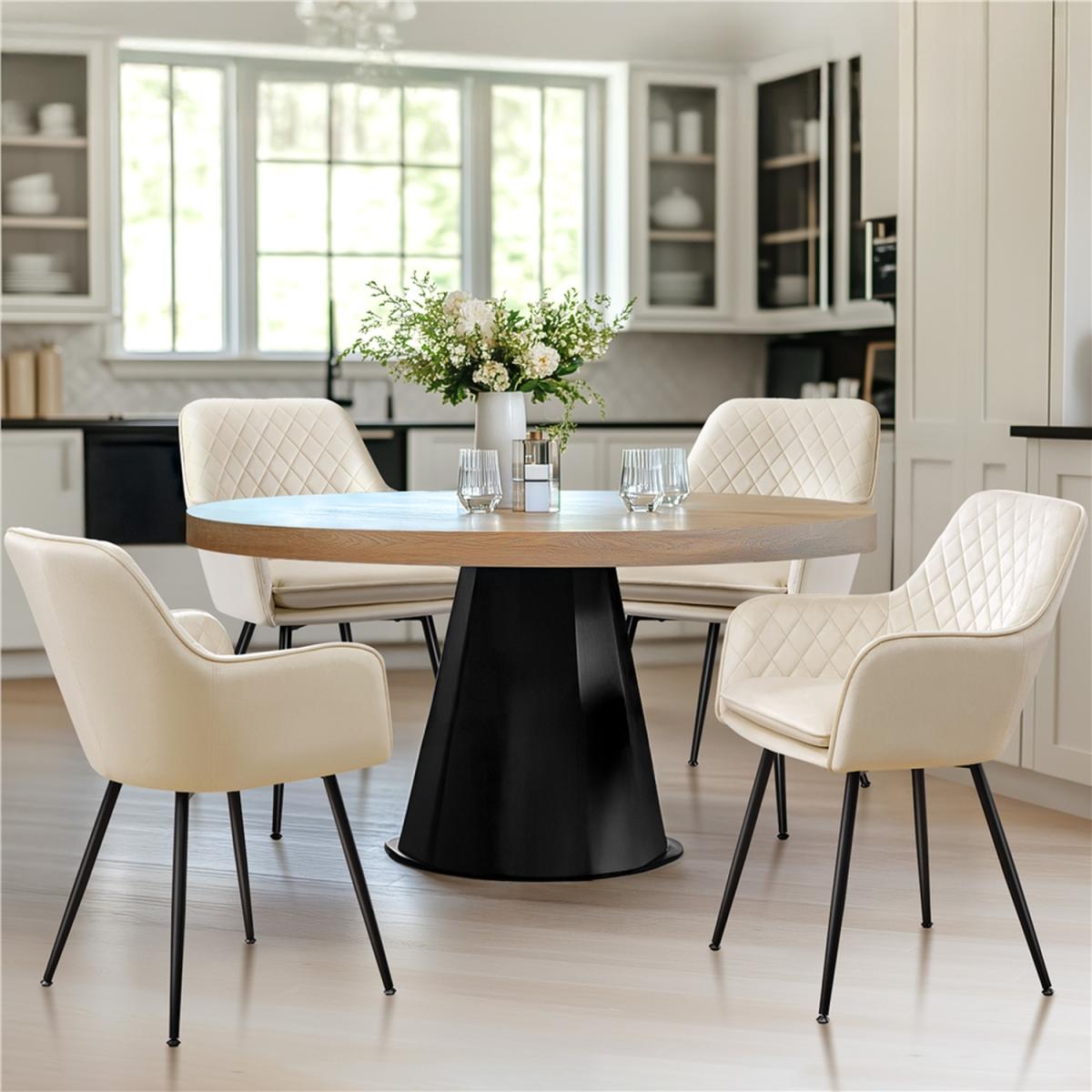 These set of modern velvet dining chairs are made of soft velvet fabric, durable foam, and strong metal. These kitchen chairs have comfortable seats and sturdy supports. The selected materials and stable structure will work well for a long time. Thearmchairs are sold ina set of 2, and they go well with any style of decoration in your living room, kitchen, porch, or office.