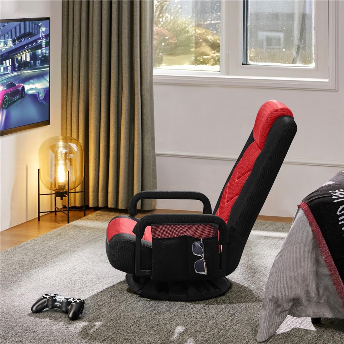 Whether you're a dedicated gamer in search of unparalleled comfort or someone who enjoys the cozy feel of floor seating but needs extra back support, our swivel floor gaming chair is the ideal solution! It combines premium features with an oversized foam-padded cushion, supportive headrest and backrest, and comfortable armrests for maximum relaxation. The 360-degree swivel allows for easy movement, while the 6-position adjustable backrest helps you find the ideal position for gaming or lounging. Enhance your gaming and relaxation experience with our folding floor chair!