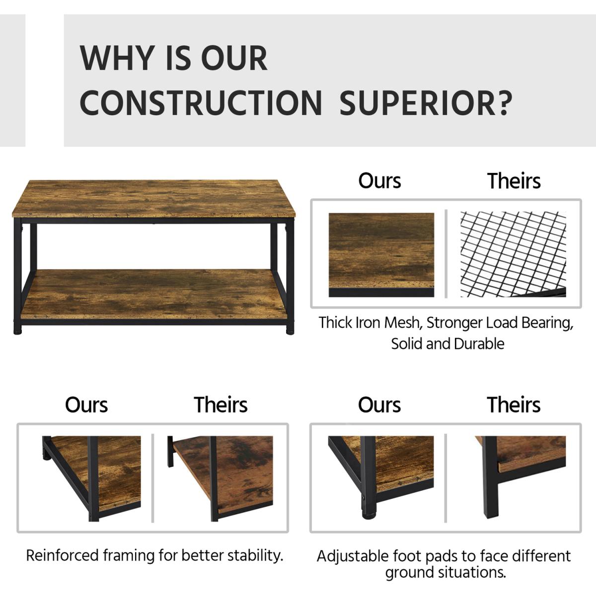 This cost-effective vintage coffee table is made of high-quality MDF and iron material, which ensures a long life span. This coffee table features a storage shelf, which offers ample storage space to keep items orderly and organized. This vintage furniture table is rustic and simplistic, which matches your home decor and highlights your taste. Its proper size makes it perfect for the living room, study and kitchen as a console table, sofa table, or storage table.
