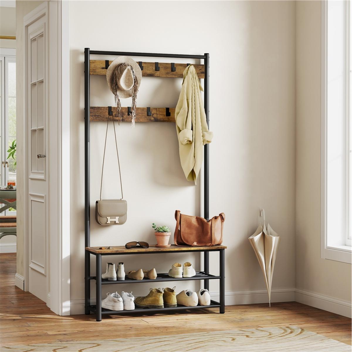 Yaheetech Metal Hall Tree with Shoe Storage Bench - Rustic Brown