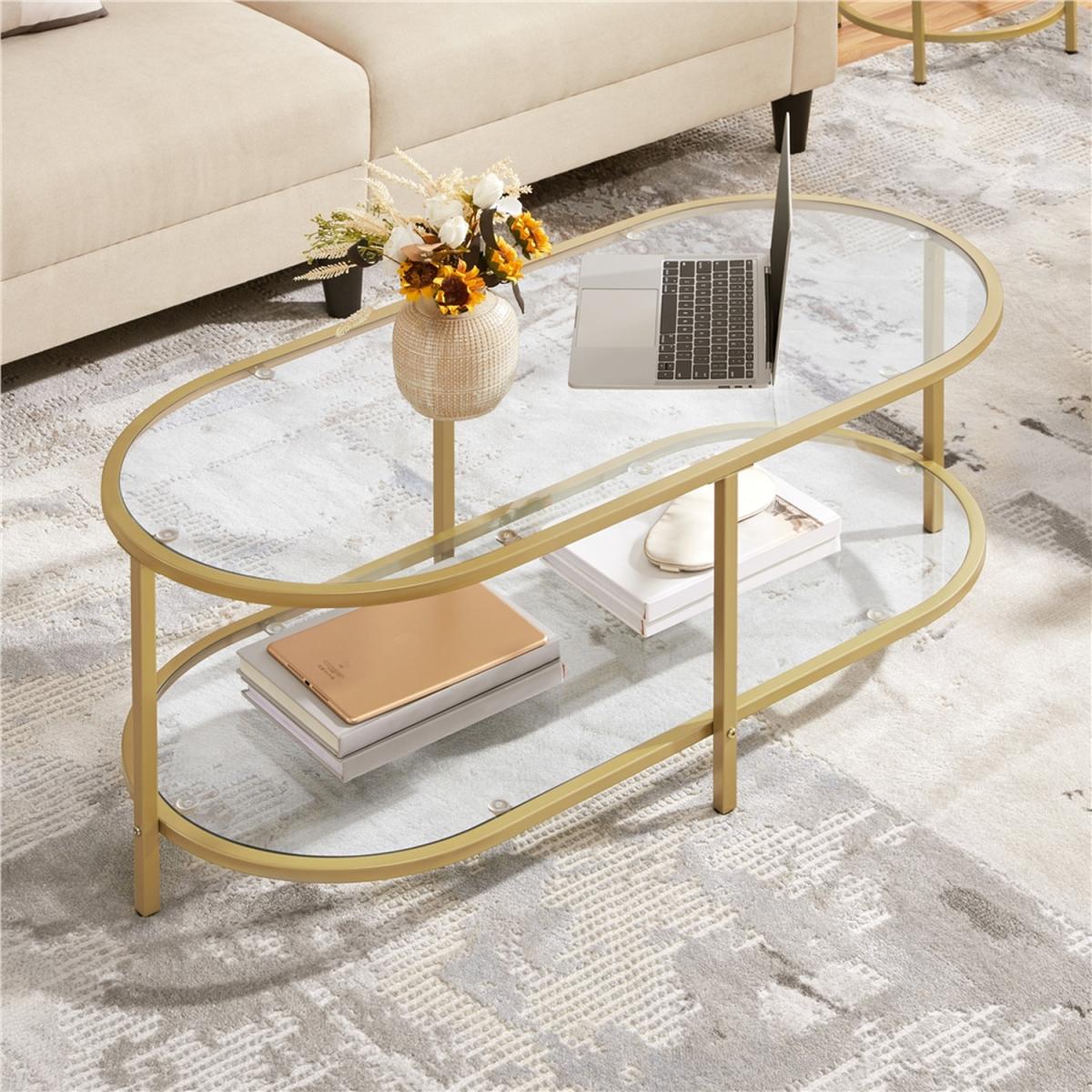 Yaheetech Modern Oval Coffee Table With Clear Glass - Gold