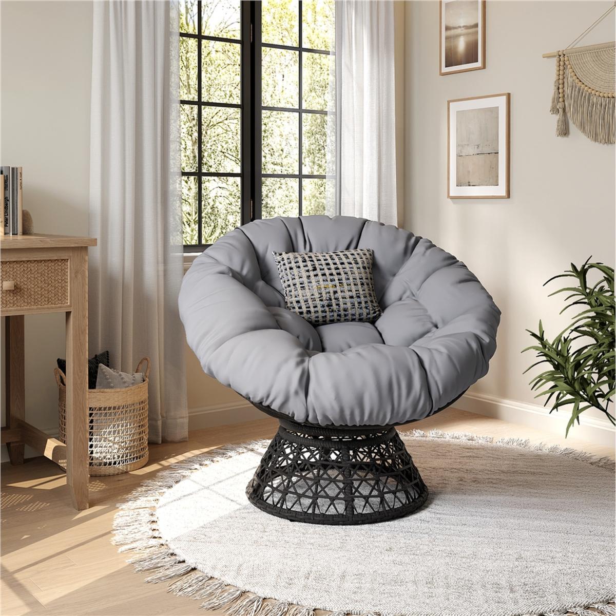 This 360 rotatable lounge chair seamlessly blends comfort, style, and functionality. Crafted from durable PE rattan, it is weather-resistant for indoor and outdoor use. The plush 5kg cushion ensures exceptional comfort, while the curved backrest provides optimal support. Its nest-inspired design adds rustic charm to any setting. The removable cushion allows for personalised aesthetics, and the compact frame is ideal for smaller spaces, making it an ideal addition to any home or garden. Yaheetech Outdoor Rounded Swivel Chair with Thick Tufted Cushion - Grey
