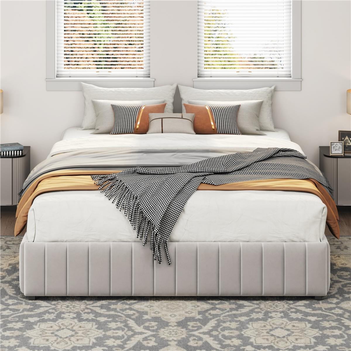 Yaheetech Upholstered Bed Frame with Storage Double Size - Beige