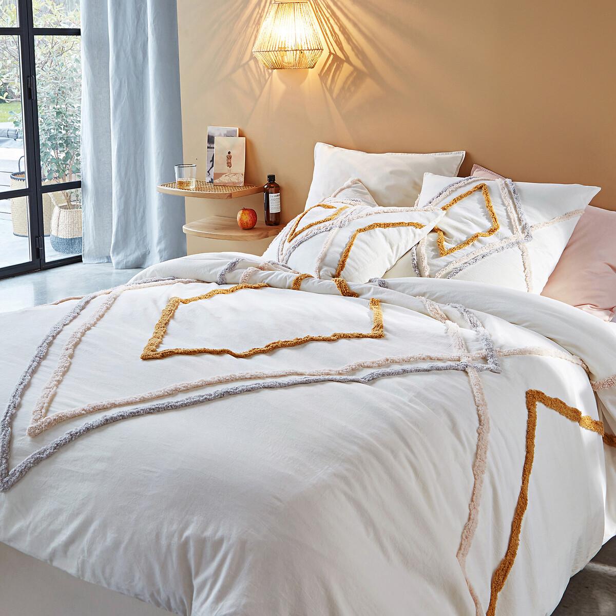 M&S Pure Cotton Tufted Floral Bedding Set - SGL - White, White