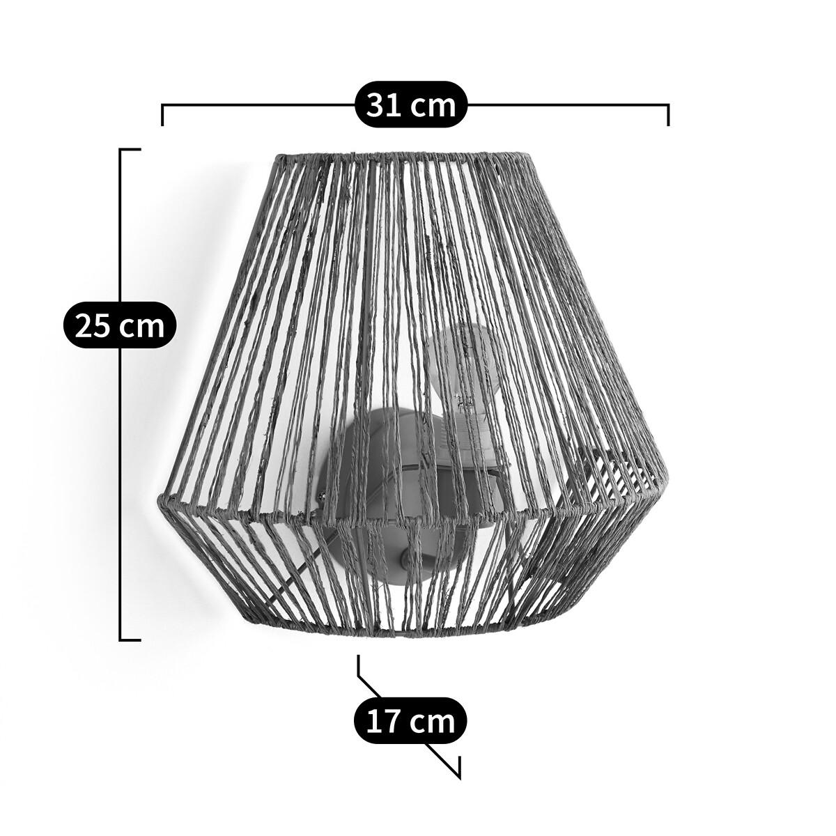 This light has been inspired by the natural trend!Product Details • Iron structure covered with epoxy paint • Natural colour: Hemp • Black option:Woven paper • E14 socket for 40W max bulb (not included) • Compatible with energy class bulbs: A to EDimensions • Length: 31cm • Height: 25cm • Depth: 17cm. Dimensions and weight of parcel1 parcel • L34 x H28 x D19cm. 0.82kg.