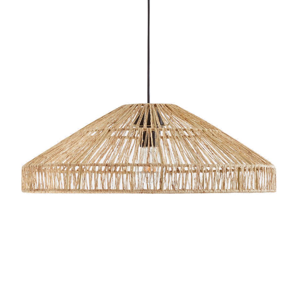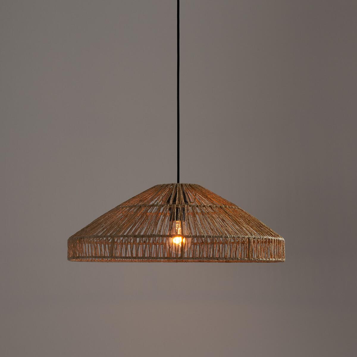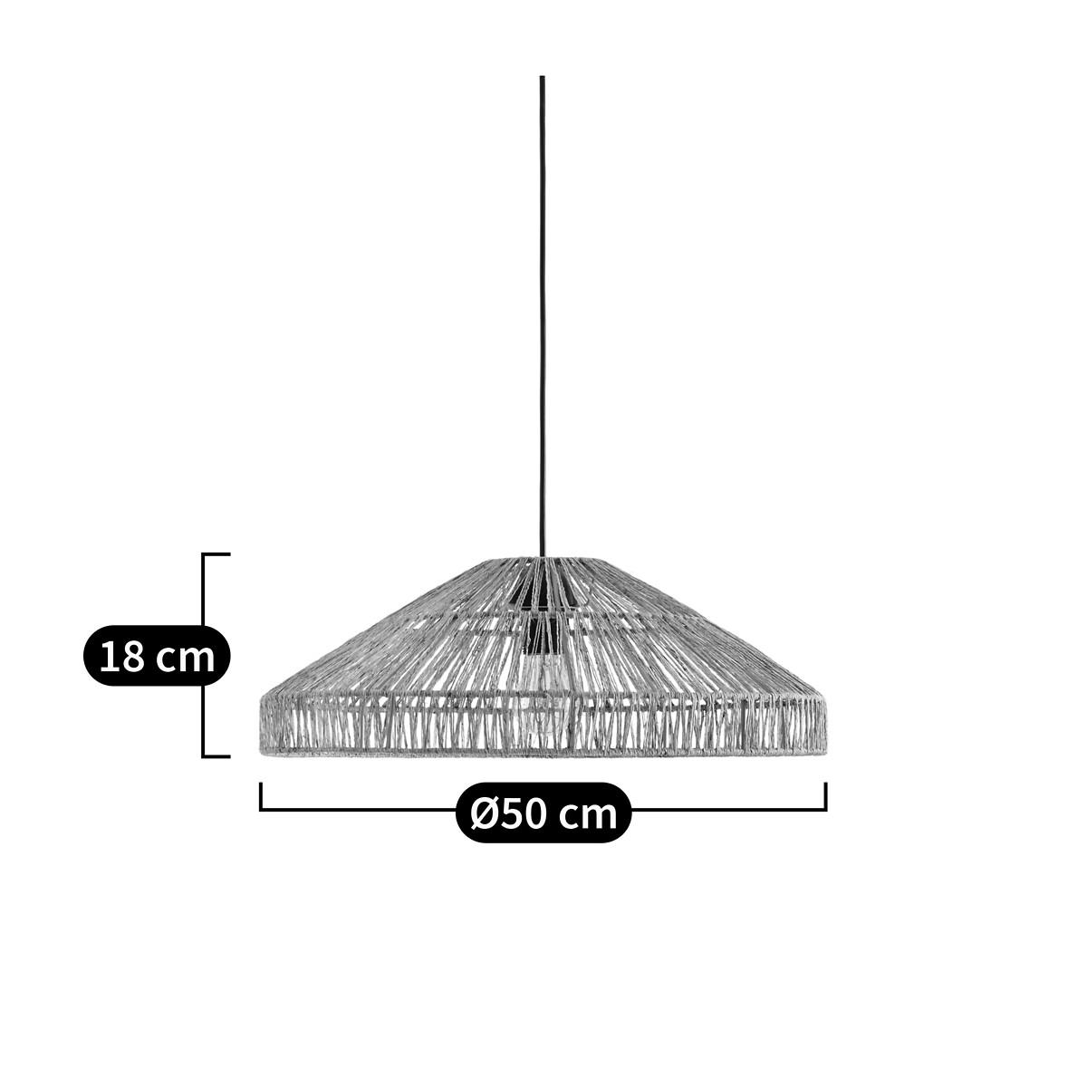 This light has been inspired by the natural trend!Product Details • Iron structure covered with epoxy paint • Natural colour: Hemp • Black option: Woven paper • Supports E27 bulb (not supplied) • This product is sold non-electrified. Baulind electrical cable is sold online. Dimensions • Diameter: 50cm • Height: 18cm. Dimensions and weight of parcel1 parcel • L53 x H20 x D53cm. 1.73kg