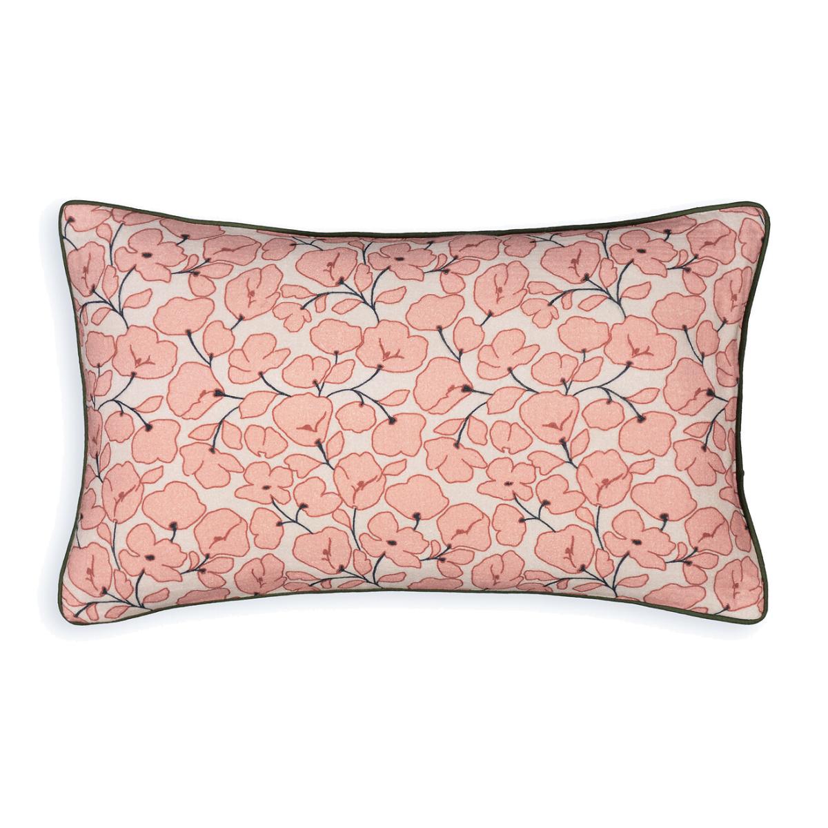 A contemporary print with a small floral and springlike pattern. With its contrasting coloured piping, the Yamani cushion cover brings elegance and freshness to a bed, sofa or armchair. Product Details • 100% cotton • Cushion cover printed on one side, plain back • Contrasting piped edging • Concealed zip fastening. Care Advice Follow our care tips to maintain the quality of your linens • Dry clean only. Sizes • 50 x 30cm
