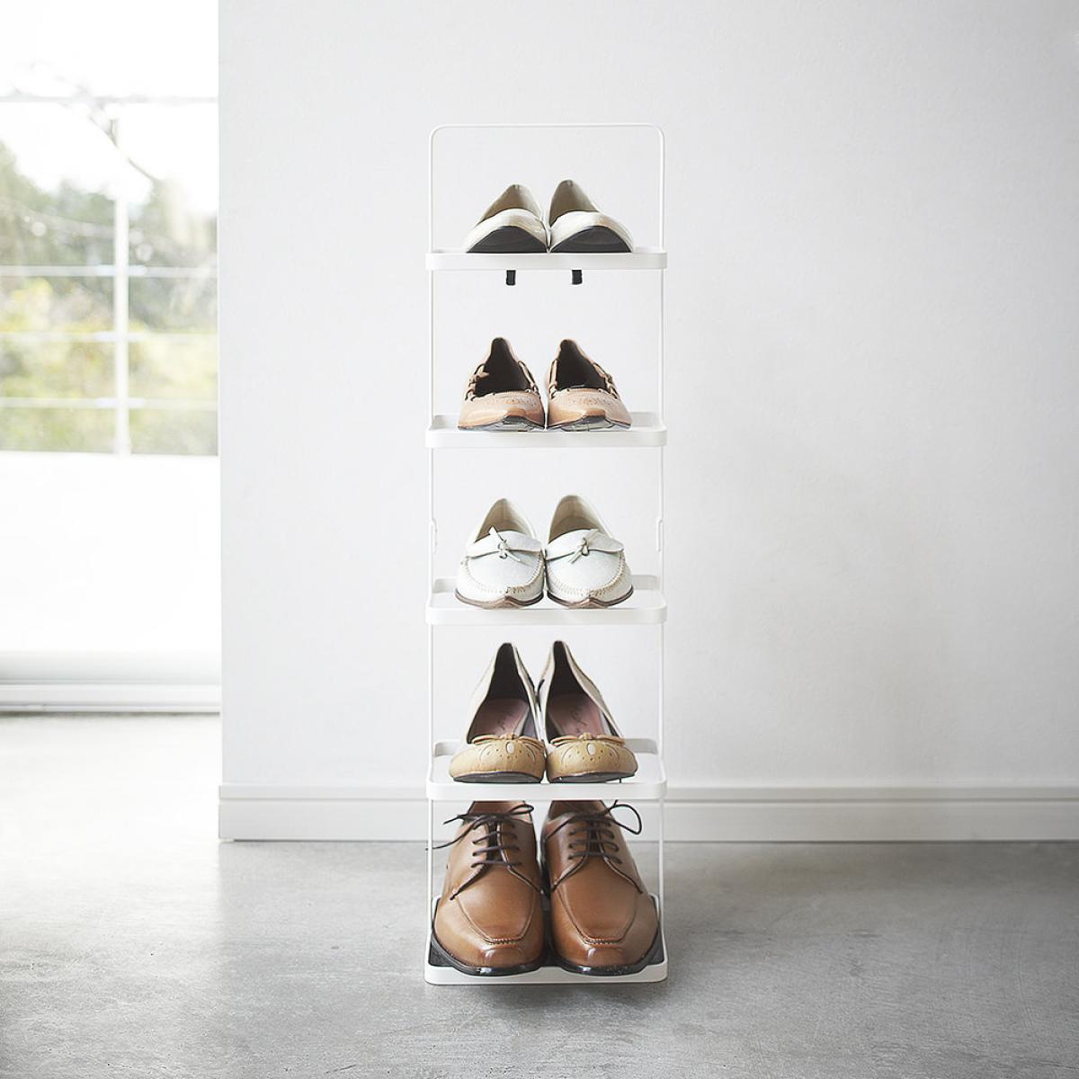 Limited on space? No problem. This shoe rack is made from sturdy steel and has a tall, slim design that'll hold up to five pairs of shoes stacked vertically. Key features: * Shoe rack * Material: steel * Dimensions: W22×D18×H77.5cm * Tall, slim design * Made for the smallest of spaces * Holds five pairs of shoes stacked vertically