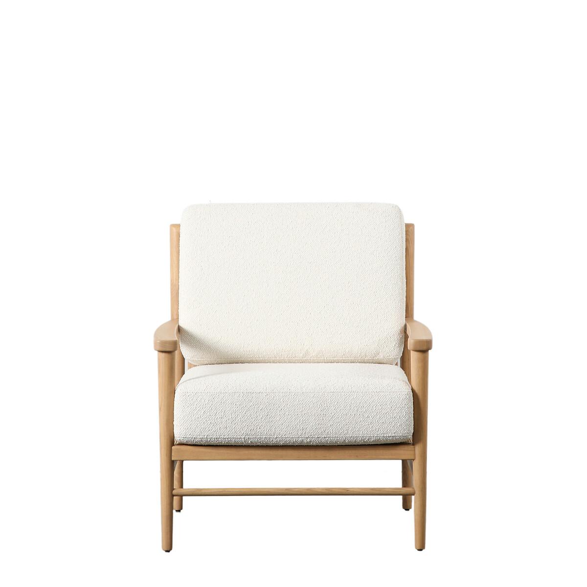 The Yanam Cream Armchair features a solid oak frame, this lovely armchair would suit a wide range of interiors. The creamy textured bouclé fabric adds interest, and the back and seat cushions are both removeable for easy maintenance. Product Details: • Solid oak frame with spindle detail • French cane base and back • Textured linen boucle fabric upholstery • Detachable seat cushions • Foam and fibre fillings. Composition: Textured Fabric, foam, fibre. Product Dimensions:Overall product dimensions: 85cmx70cmx78cm. Seat Height: 42 cm. Seat Width between arms: 56 cm. Seat Depth: 52 cm. Back height from seat: 45 cm Clearance to floor: 14 cm. Arm height from seat: 13 cm. Please remember to measure your available space before ordering. Packaged Dimensions. Packaged Dimensions: 85cmx78cmx73 cm Weight: 17.8 kg. This product will be dispatched by one of our trusted suppliers. You’ll be contacted by their selected courier about your delivery. Please note: this product cannot be delivered to all Offshore Islands, Northern Ireland or Republic of Ireland. GALLE01