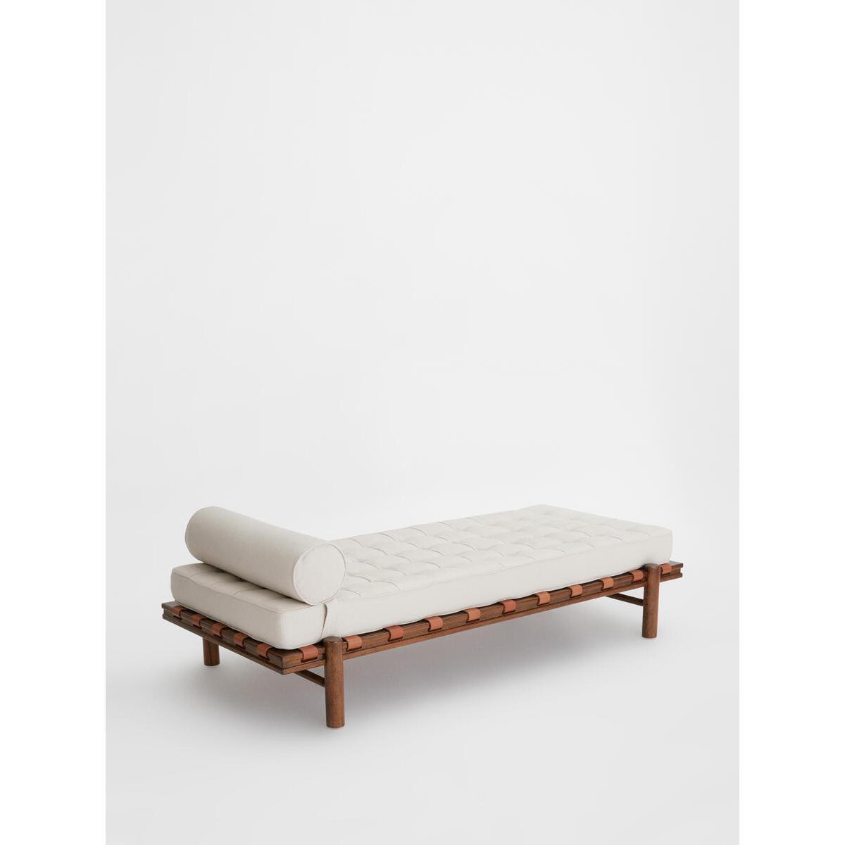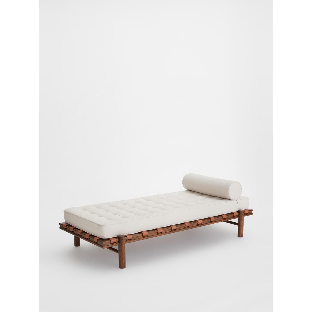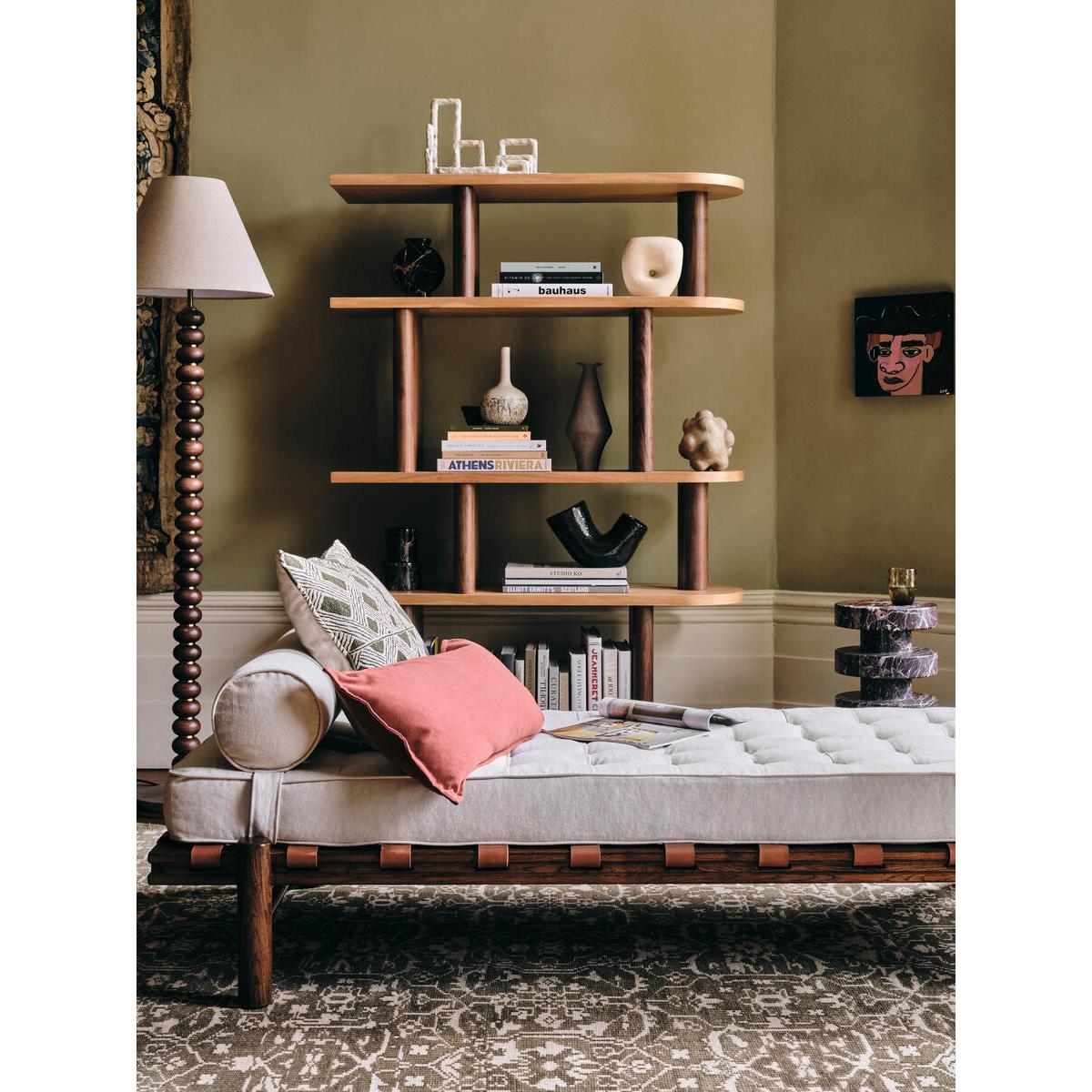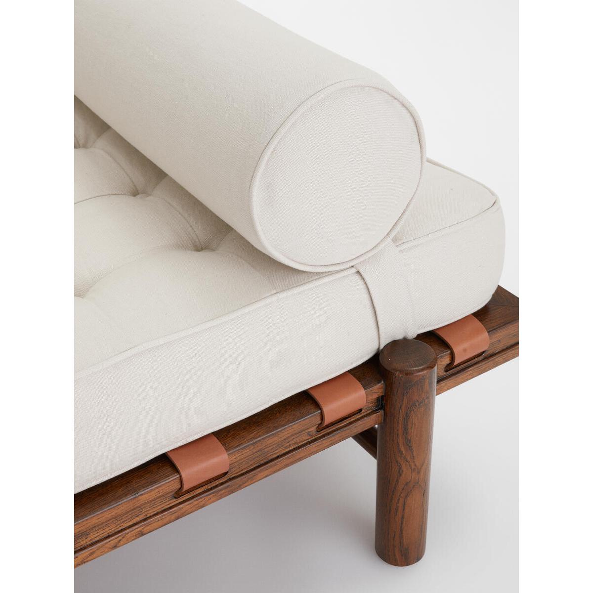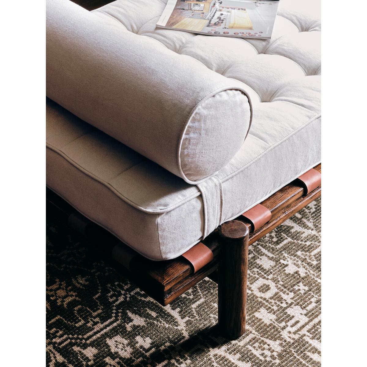 Referencing our Downtown LA House, the Yani daybed features a solid oak frame, adjustable bolster and pulled button detailing. Finished with woven leather straps, this vintage-inspired piece is a perfect addition for relaxing in your living room. Indoor daybed Solid oak frame 100% linen fabric Inspired by Soho Warehouse