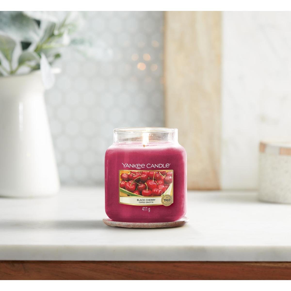 The absolute delicious sweetness of rich, ripe black cherries. Top notes - Cherry, Almond. Mid notes - Cherry, Cinnamon. Base notes - Sweet Cherry. Our medium Jar Candle provides up to 75 hours of soothing fragrance designed to create a welcoming home, adding a pleasant aroma to any space. The iconic Jar shape is a symbol of our more than 50-year commitment to creating the world's finest candles.