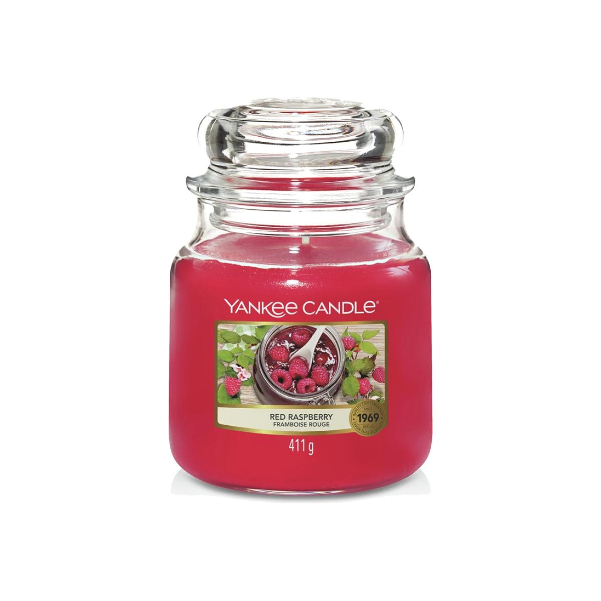 Tangy sweet and full of nature's goodness there is nothing quite as delicious as ripe, rosy red raspberries. Made with top notes: juicy orange, sweet mandarin, black cherry, mid notes with black raspberries, juicy strawberries, blackcurrant, strawberry leaves & base notes with crystalized sugar, sweet musk. Our medium Jar Candle provides up to 75 hours of soothing fragrance. Convenient and easy to use, each candle is made with premium-grade paraffin wax and the finest quality ingredients. Premium quality ingredients that create distinctive true-to-life scents. Classic glass apothecary jar with glass dome lid. Red Raspberry scent. Paraffin wax. Approximate burn time 75 hours. Size H13.5, W9.7, D9.7cm. Diameter 9.7cm.