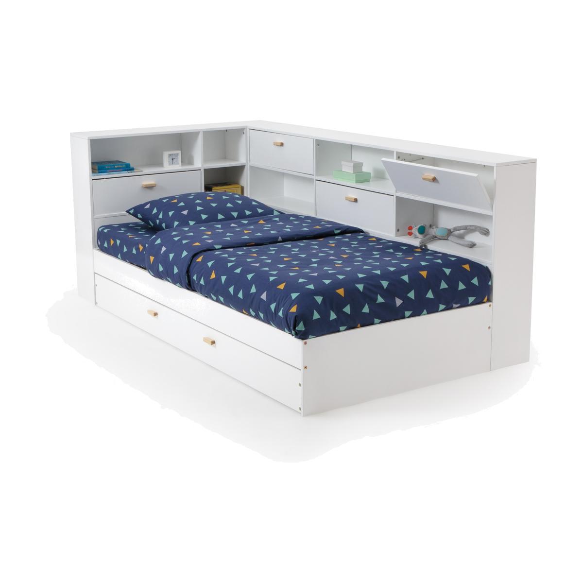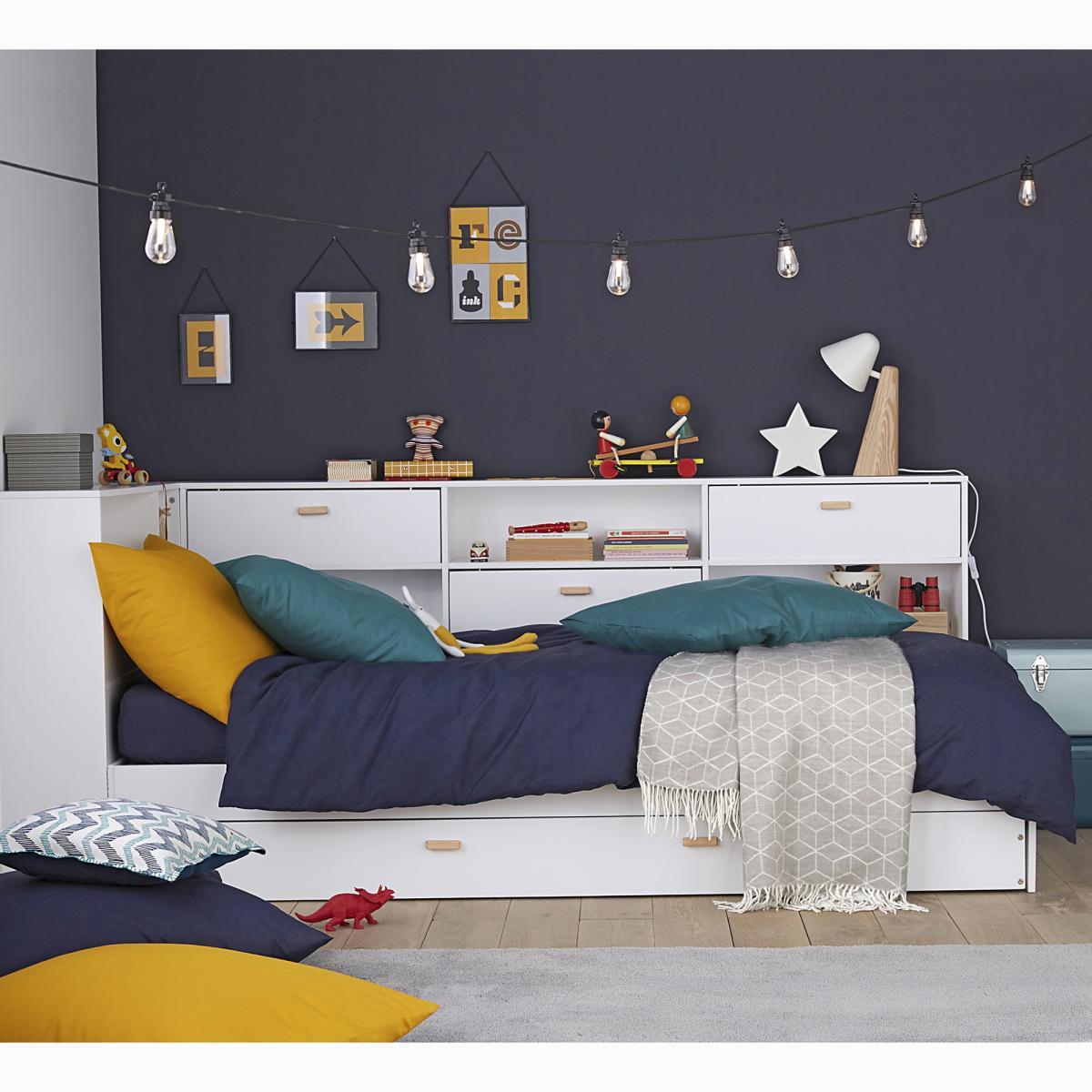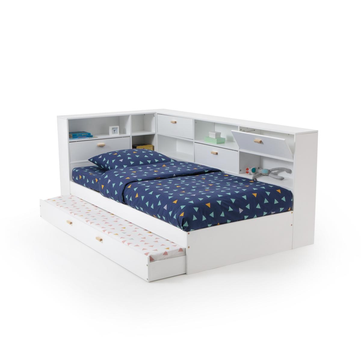 Yann bed. With its numerous storage spaces, this bed is ideal for your child's bedroom. Plus: a trundle bed is perfect for sleepovers!
