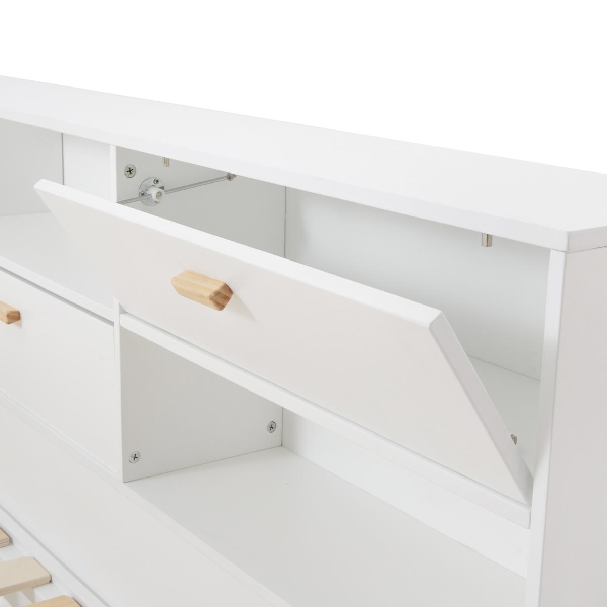 I really like this bed’s clever use of storage and versatility, making it ideal for maximise small spaces or creating a multifunctional kids' room. The built-in drawers and the trundle offer practical solutions for keeping the room tidy and can easily accommodate visitors or sleepovers. It works well in contemporary, Scandinavian-inspired interiors due to its clean lines and white finish, which can be softened with colourful cushions and bedding. For styling, consider layering with fun patterns or subtle pastel tones to make the space feel inviting and playful. Pairing with clever shelving or under-bed organisers will further enhance its practicality, making it a well-rounded choice for both style and function.