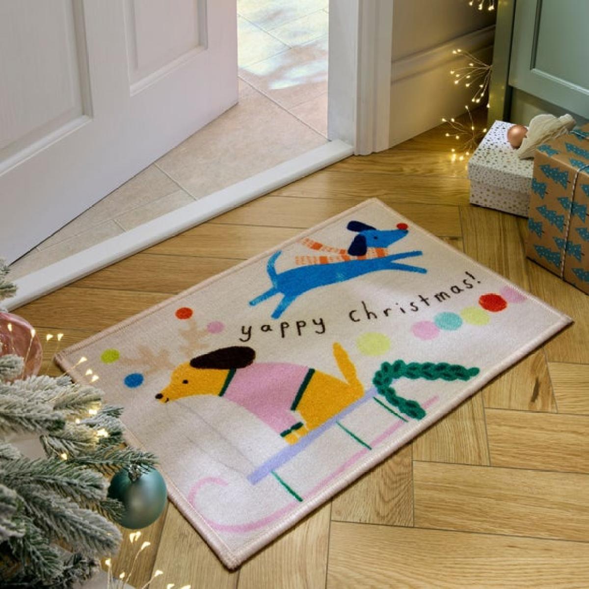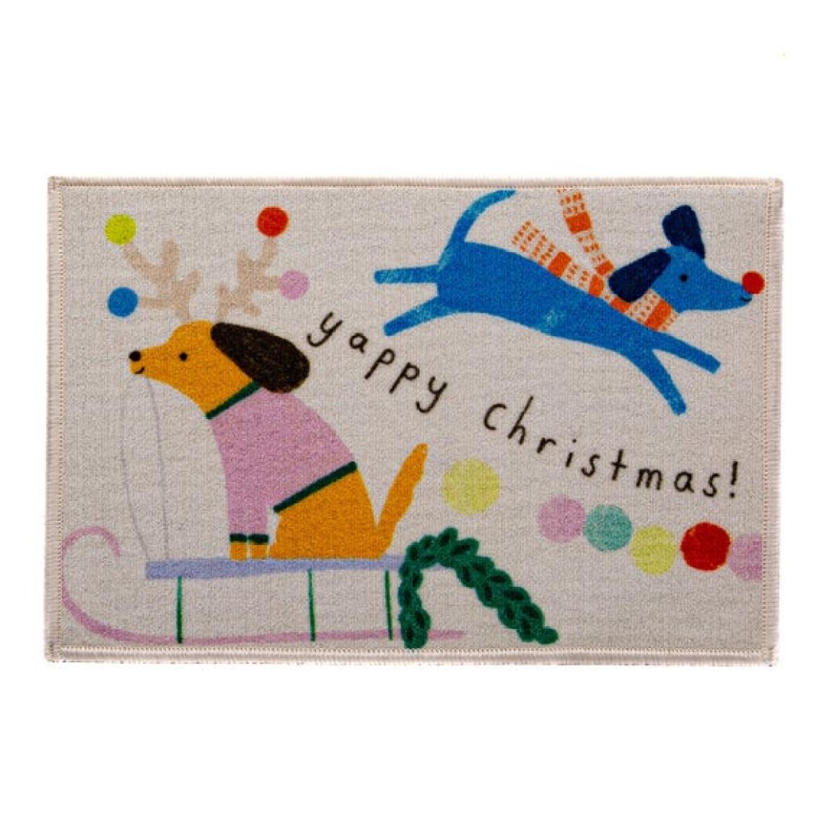 * Machine Washable * Festive Dog Design * Anti-Slip Backing Celebrate the festive season with the Yappy Dog Christmas Washable Doormat! Featuring a fun and festive dog-themed design, it includes an anti-slip backing for added safety and is machine washable for easy clean-ups. A cheerful, pet-friendly way to welcome guests (and pets) this Christmas!Care Instructions: Shake or vacuum to remove and loosen fibres, dirt and debris using a nozzle attachment. In the case of spillage, blot with a clean cloth. Place into the washing machine on a gentle cycle at 30 degrees and air-dry flat. For best results lay flat and reshape as soon as possible. We recommend our small and medium size washable rugs up to 120cm x 170cm will fit most washing machines sizes between 8 - 10kg. Please check your manufacturer guidelines before washing and do not overload the drum. For Large and High pile washable rugs a laundrette service may be required.